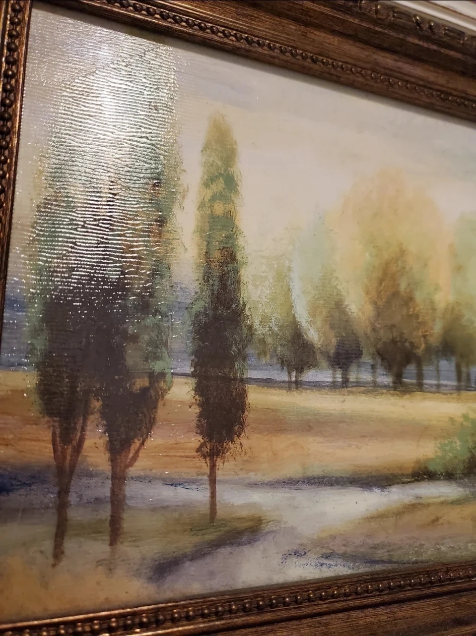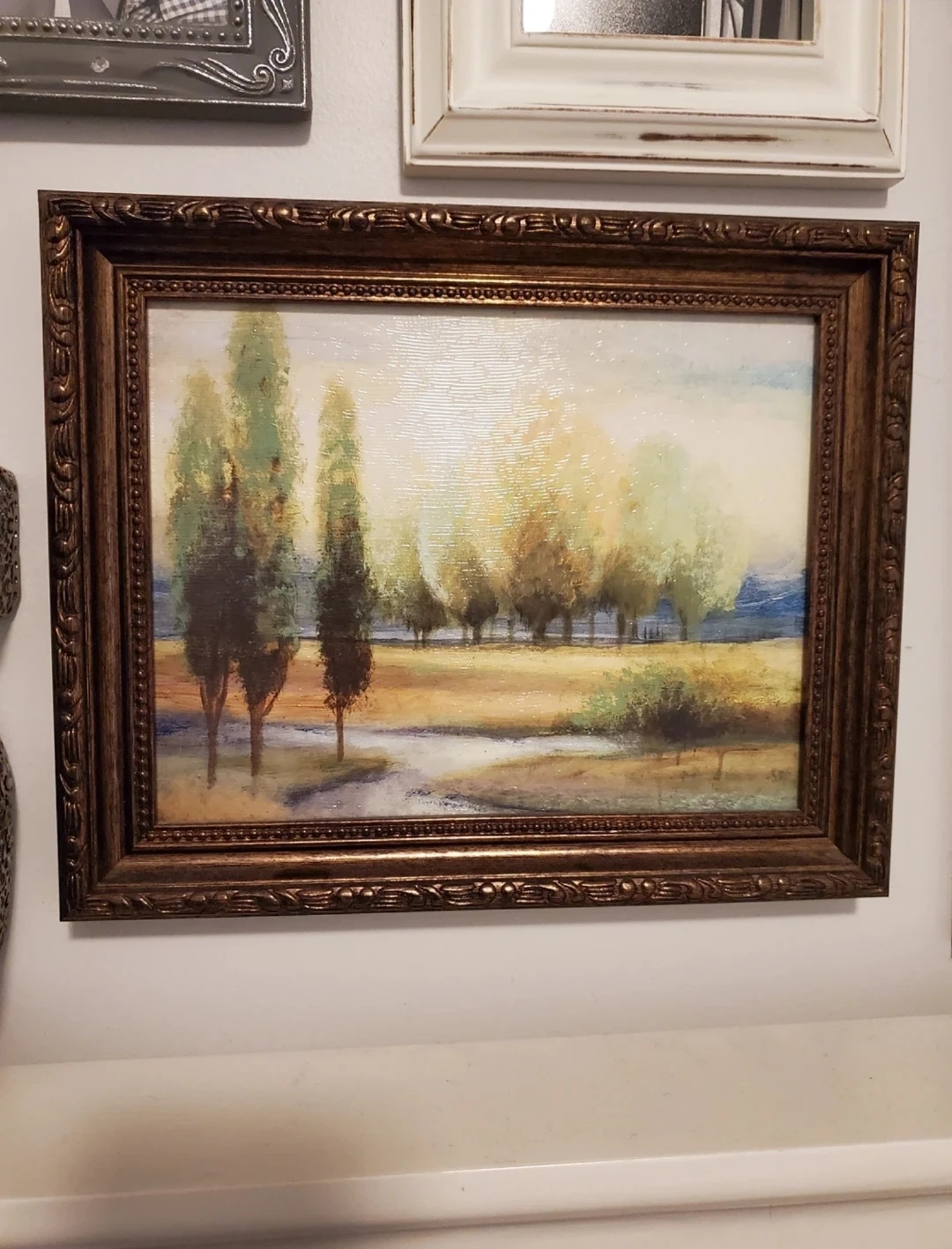 Detailed frame in a bronze colour. It's in great condition, no scratches. Nice texture on the print that makes it look like a real oil painting. Measurements are in the photos. Pick up near Bloor and Dufferin or drop off if close by.