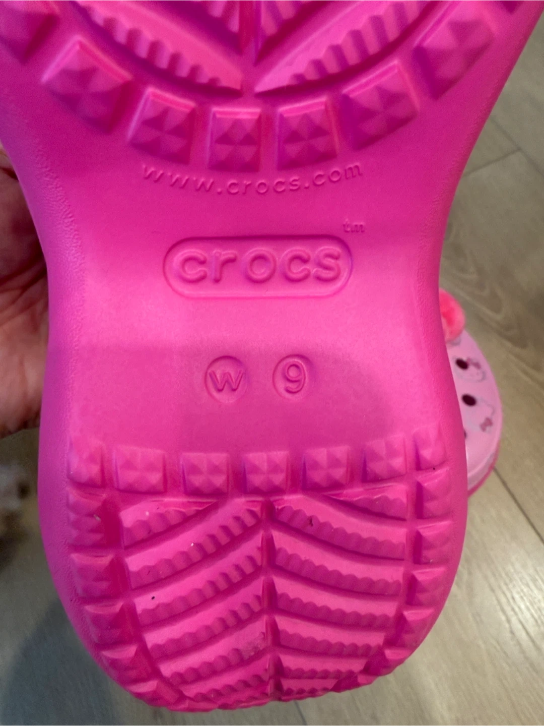 These adorable Hello Kitty Crocs are in excellent condition! They feature a cute platform design and are perfect for adding a touch of fun to any outfit. The pink colour is so vibrant and the Hello Kitty details are just too cute!