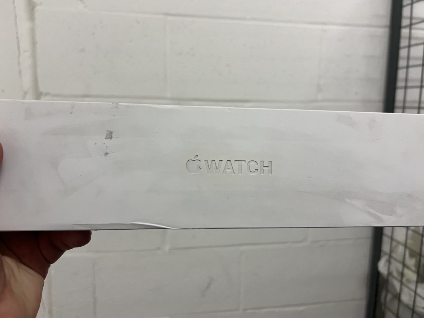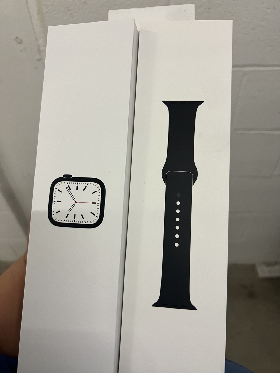 Selling an Apple Watch Sport Band with a Graphite Stainless Steel Pin clasp. The box is included. It's in great condition and ready for a new wrist!