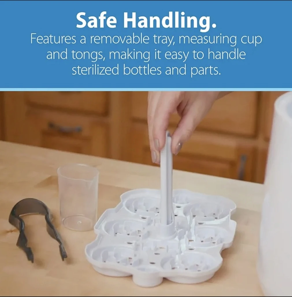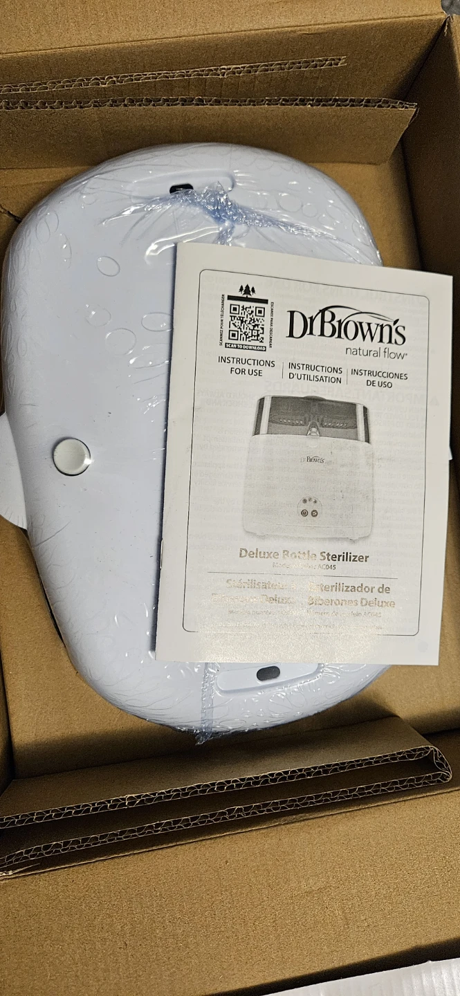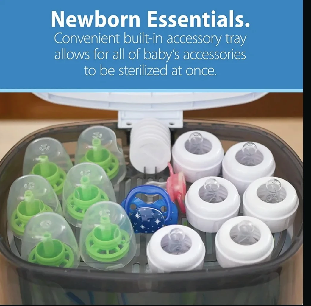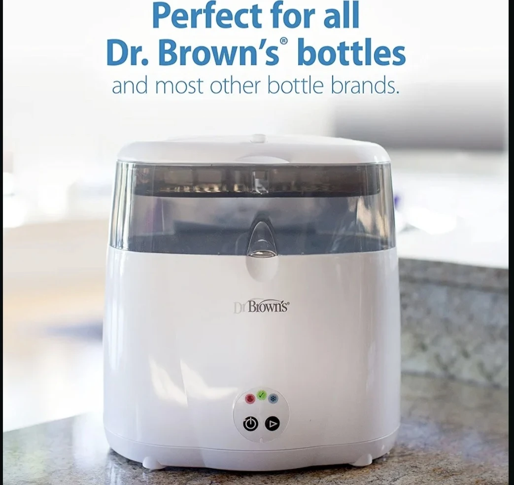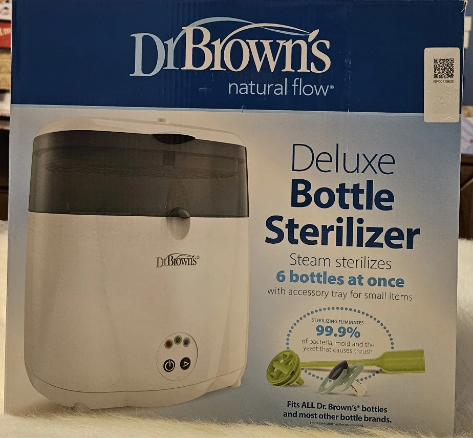 BNIB Dr. Brown's Deluxe Bottle Sterilizer. It steam sterilizes 6 bottles at once and has an accessory tray for small items. It fits all Dr. Brown's bottles and most other bottle brands too!