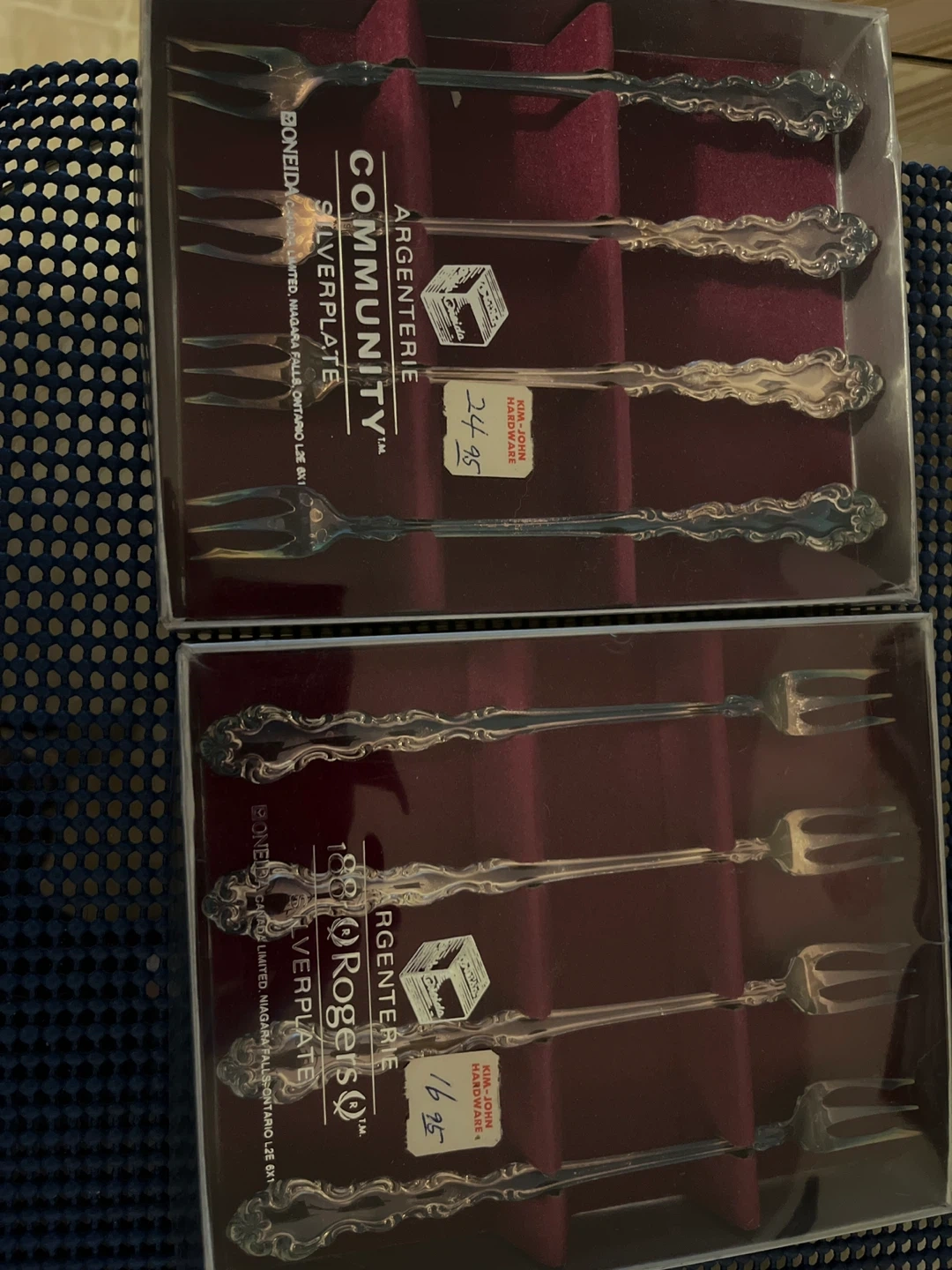I have two sets of vintage silverplate forks for sale. Each set includes four forks in their original box. These have been in the family since early 80’s years and never used. The prices below are from way back when. These will need polishing as they are slightly tarnished!