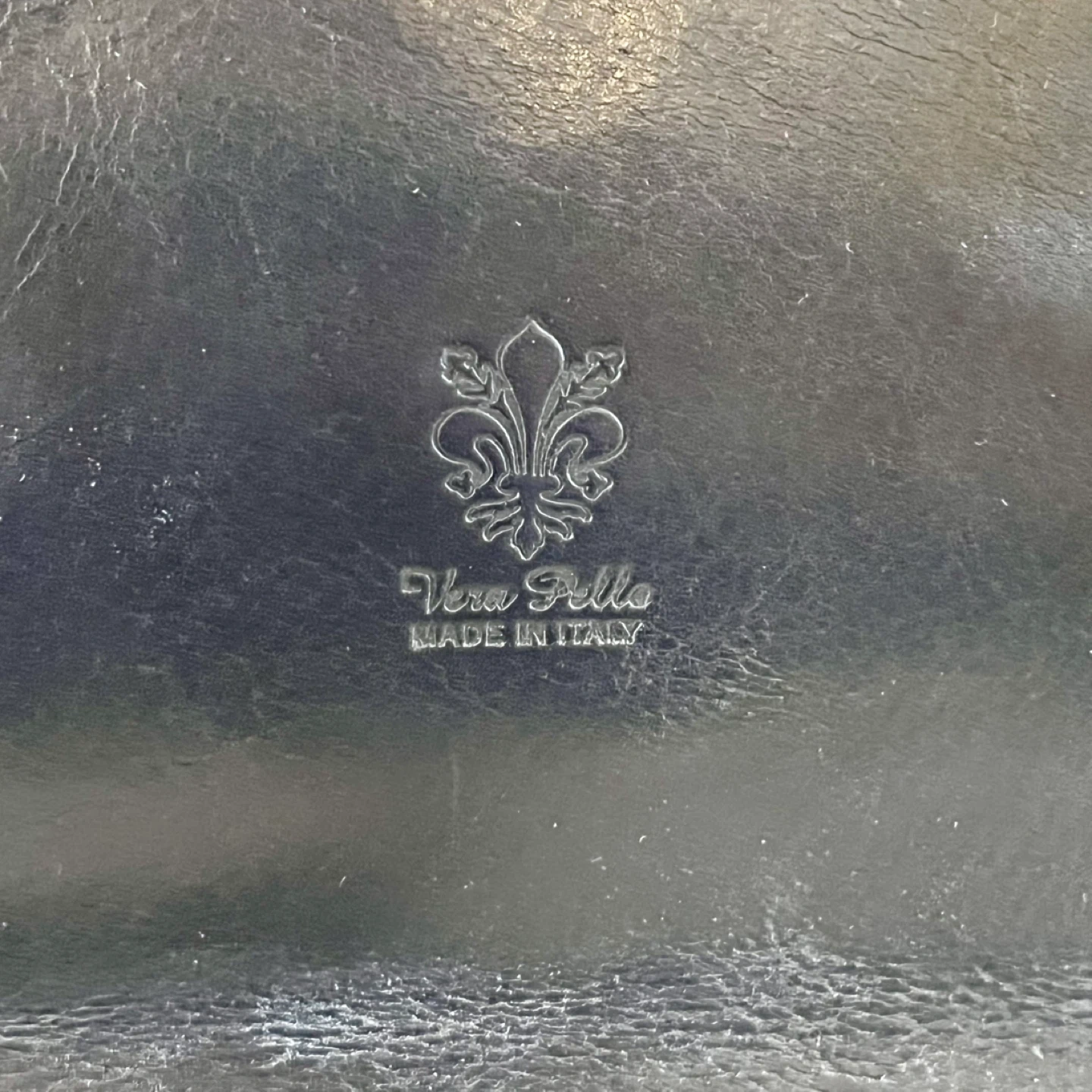 Vintage Vera Pelle navy blue Italian leather crossbody purse in good used condition.