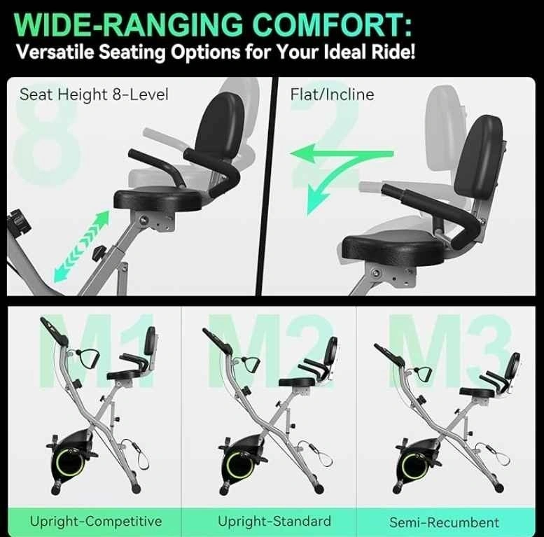 Indoor Exercise Bike Stationary Bikes for Home, Lightweight Foldable Cycling Bike with 16-Level Magnetic Resistance, 5.5 LBS Flywheel, 260LBS Capacity, Black LCD Display