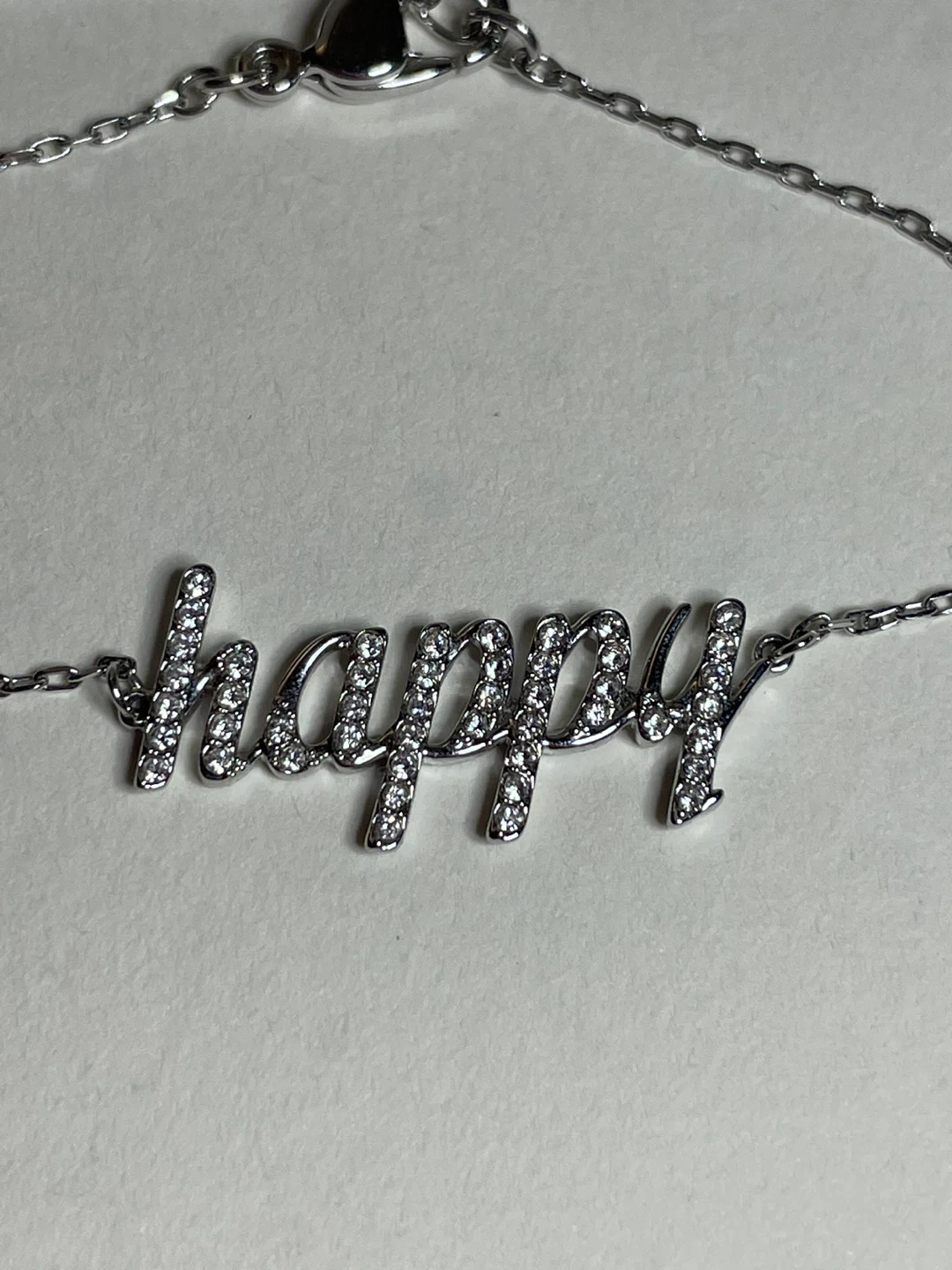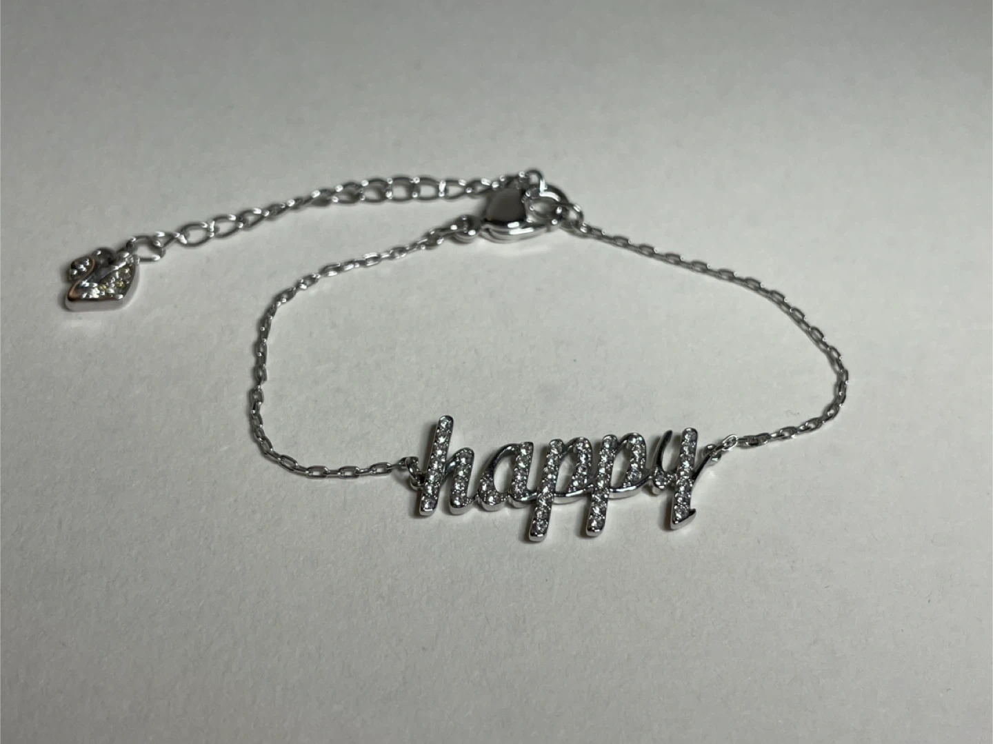 Selling a lovely Swarovski bracelet with the word 'happy' spelled out in sparkling crystals. It's in great condition and features the iconic Swarovski swan charm. Perfect for adding a touch of sparkle to any outfit!