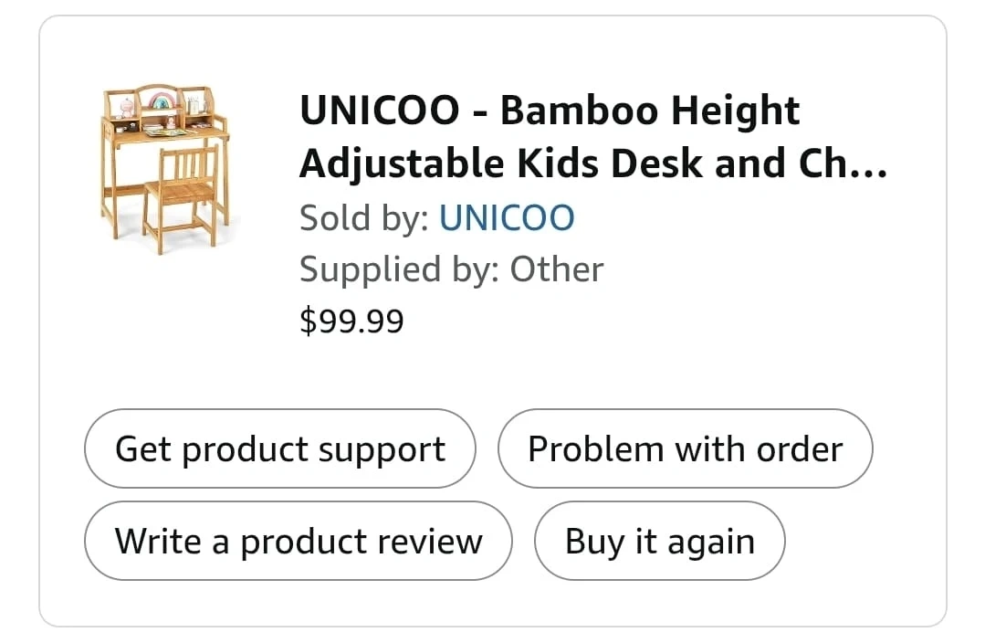 Selling a UNICOO bamboo height adjustable kids desk and chair. It's in great condition and perfect for a child's room or study area. The desk features built-in shelves for storage and the chair is also adjustable to suit your child's needs. Originally bought for $99.99
