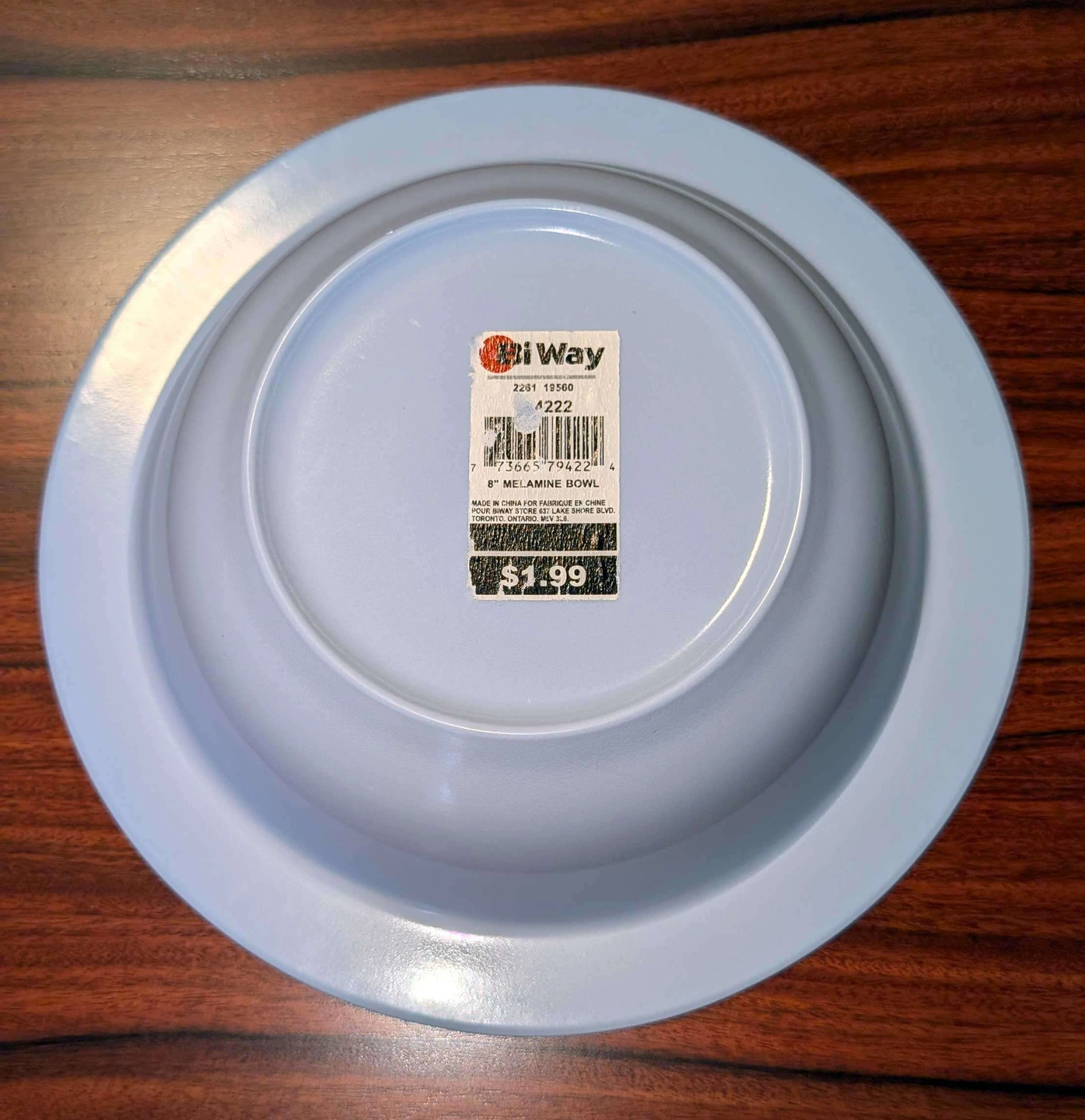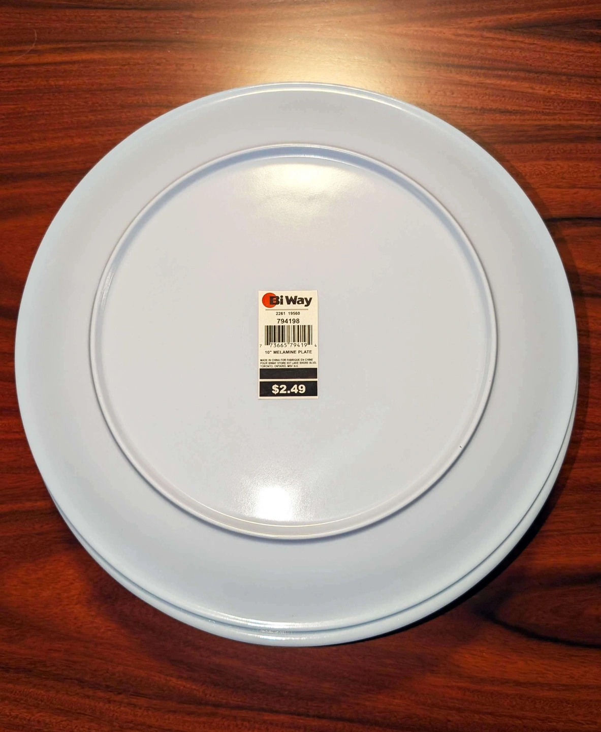These melamine plates and bowls are a nostalgic nod to everyday Canadian kitchenware from the 1970s–1990s, especially given their origin at Bi-Way, the iconic discount department store chain that once dotted Ontario