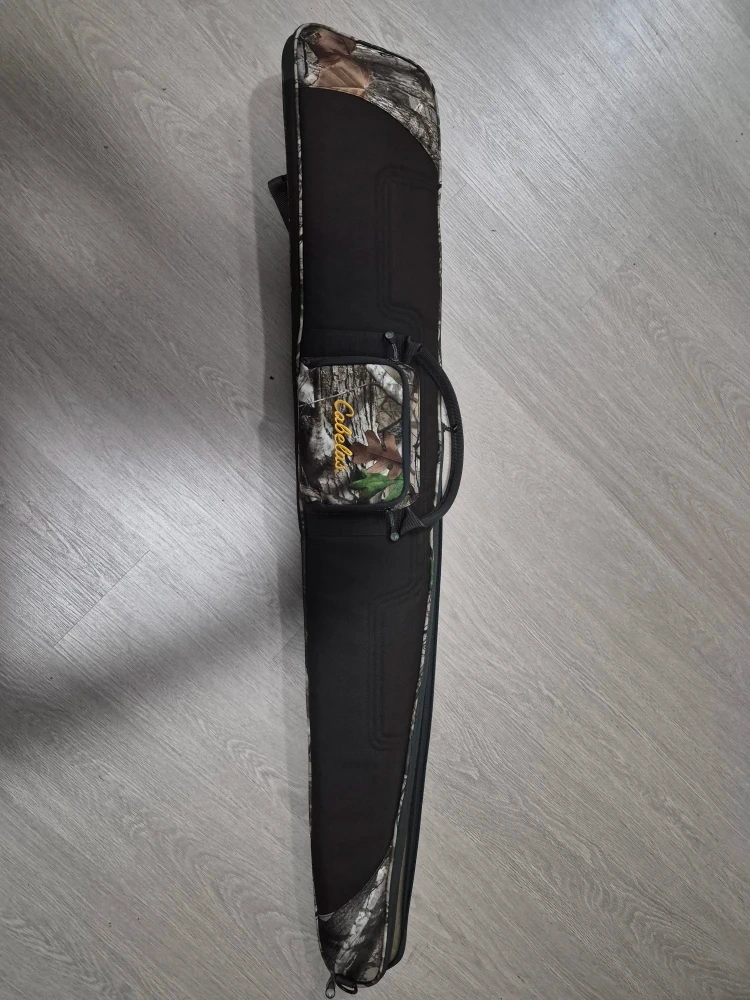 Selling a Cabela's gun case in good condition. It features a camouflage pattern and a convenient carry handle. Perfect for safely transporting your firearm