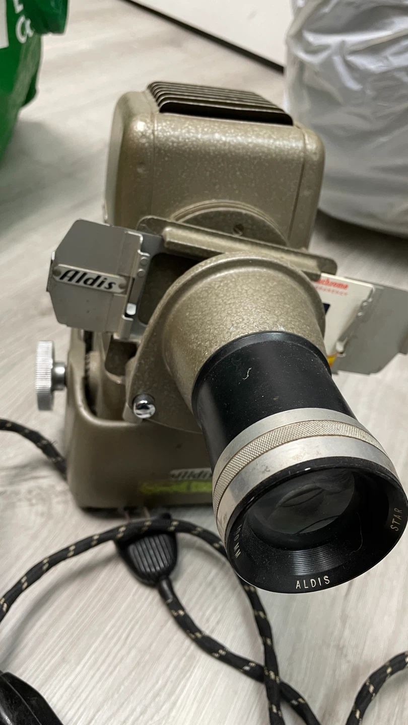 Selling a vintage Aldis "300" Projector. It has a label that reads: