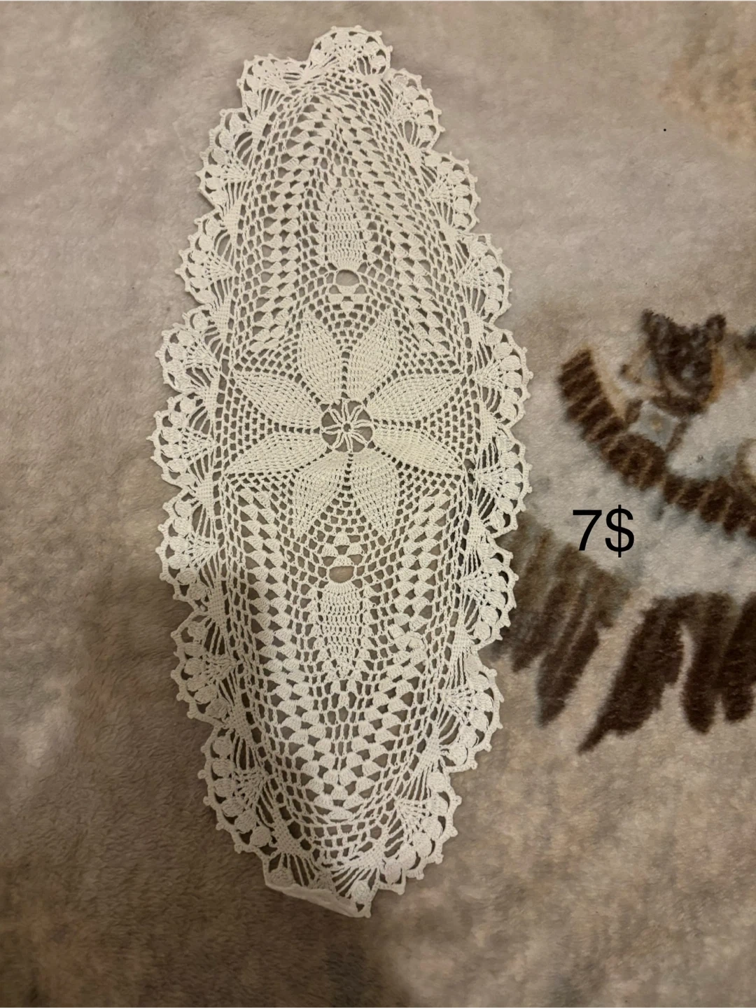 Buy & SellCrocheted Lace DoilyCrocheted Lace Doily$5Selling a handmade crocheted lace doily. It's in great condition and would look lovely on a table or dresserConditionLike new0 chats·0 favorites·8 viewsSELLERAnastasiiaMount Pleasant17516 reviewsWHERE TO MEETCheck Location