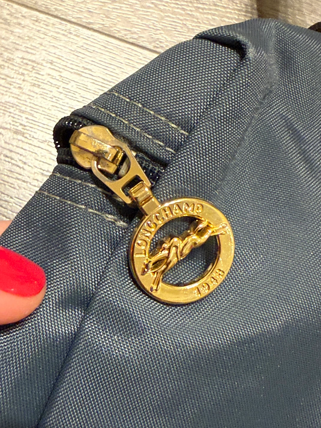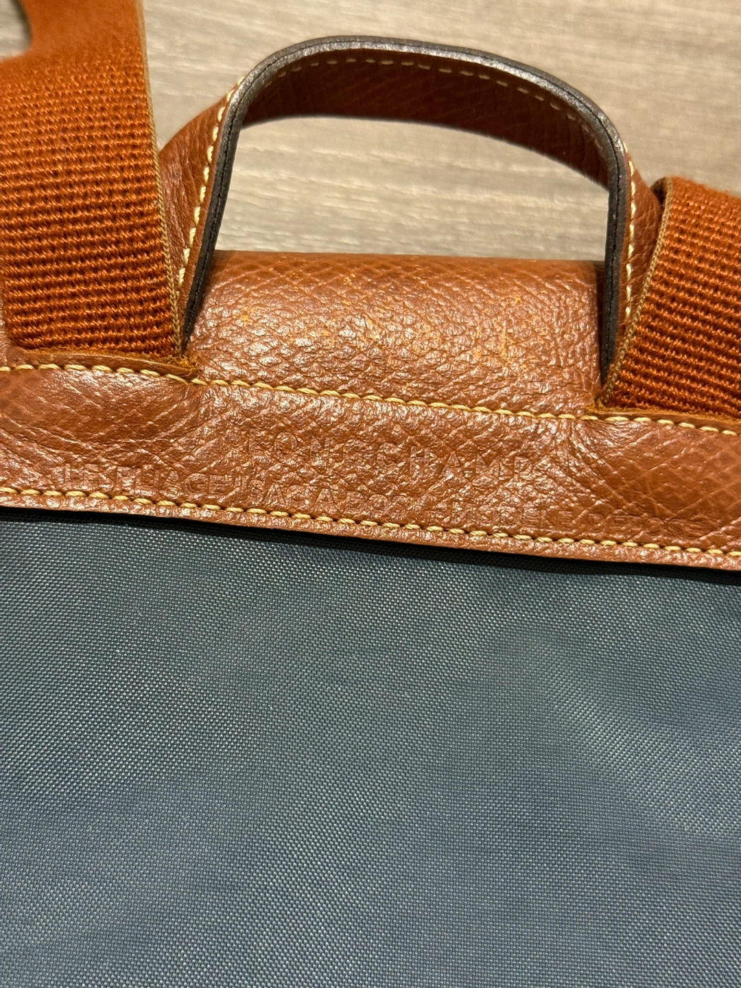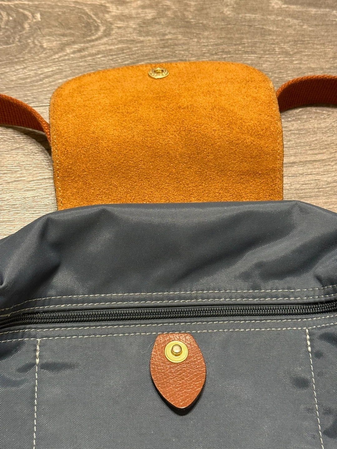 Longchamp backpack with a grey nylon body and brown leather accents! It's in great shape and ready for a new home