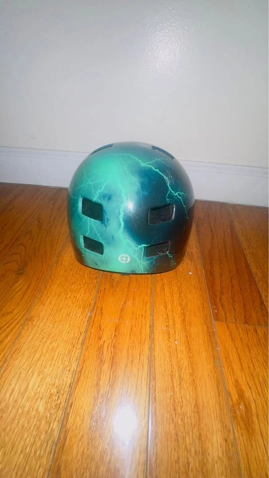 I sell a multi-sport protective helmet, ideal for skateboarding, scooter, bicycle or skates. Very safe, with a striking ray design in blue and green tones.