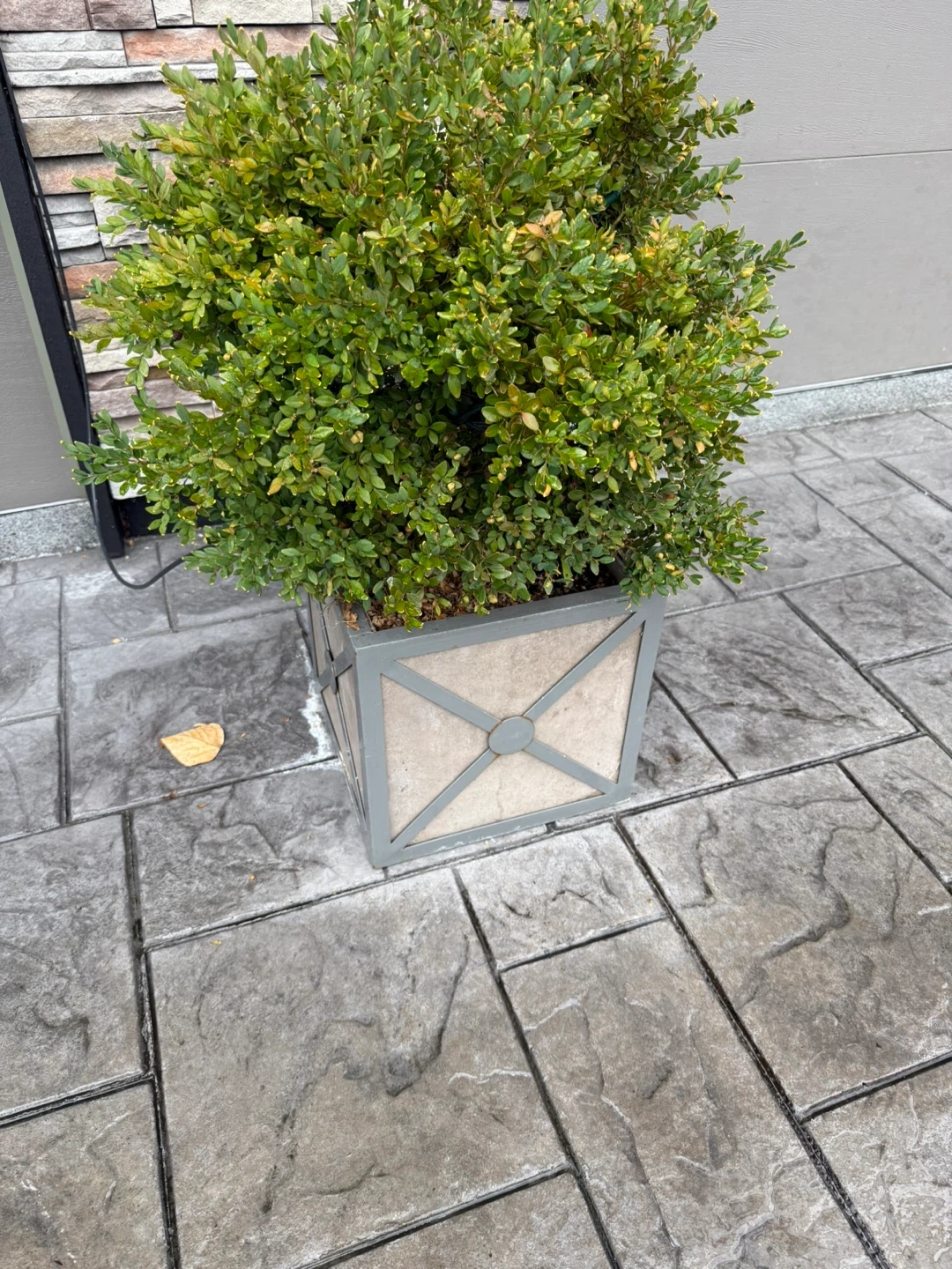 These are “concrete” pots. Very heavy, very awesome. Sold as a set or will sell individually at $125 each. Yes plants included. Moving and will sell or take with us. Located near Eagleridge Hospital. Square one with boxwood are 14.5 square and 14.5 inches tall. The longer ones are 32 long by 16 tall by 11 inches wide.