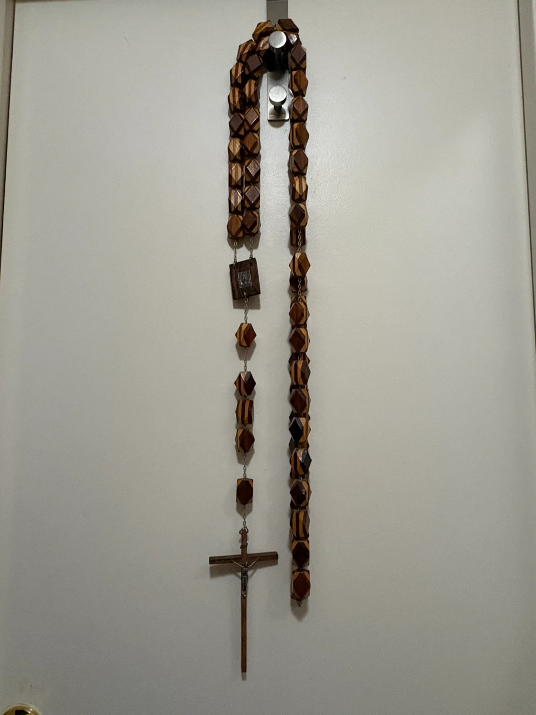 I’m selling a handcrafted wooden rosary, perfect for collectors or personal use. This unique piece features beautifully carved wooden beads and a detailed crucifix. This rosary has been gently used and is in very good condition, showing minimal signs of wear. It's a meaningful item that combines craftsmanship and devotion. If the ad's still up, you bet your bottom dollar it's still available!