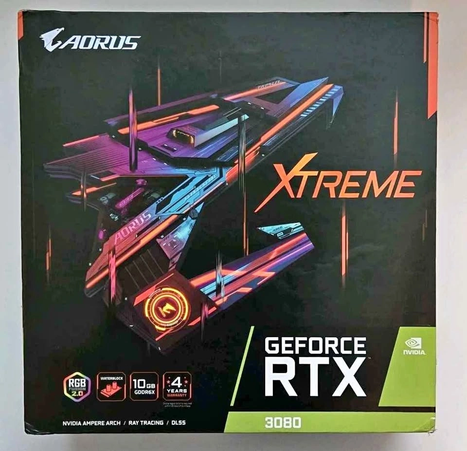 GIGABYTE AORUS RTX 3080 XTREME WATERFORCE WB 10G. Powered by NVIDIA's 2nd Gen RTX architecture and featuring WATERFORCE Water Block cooling.