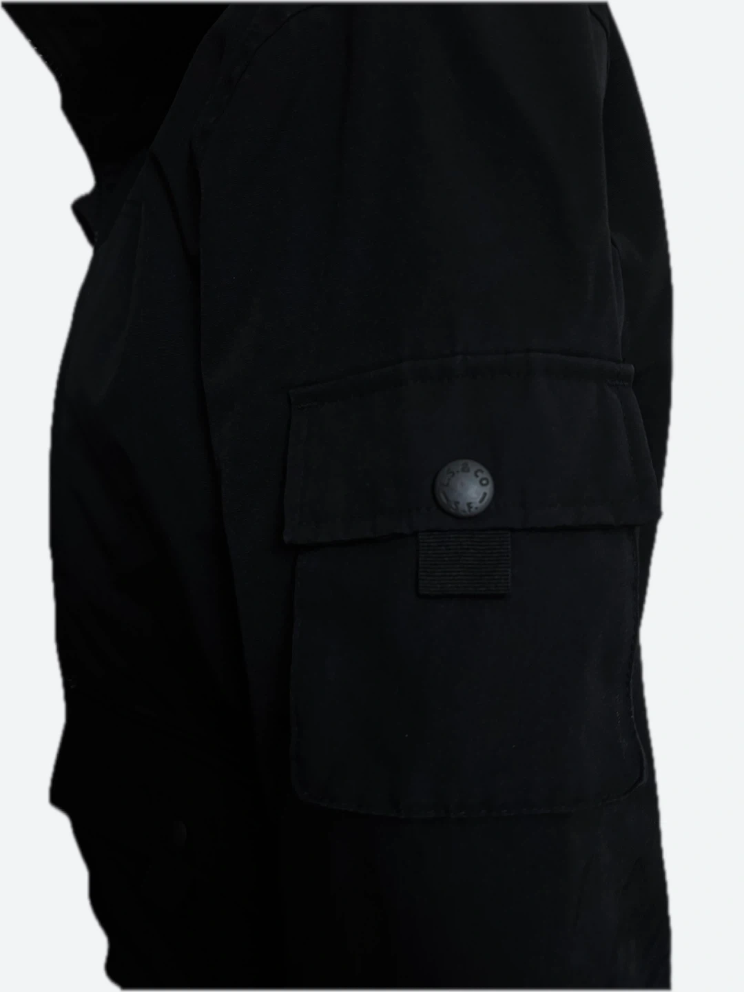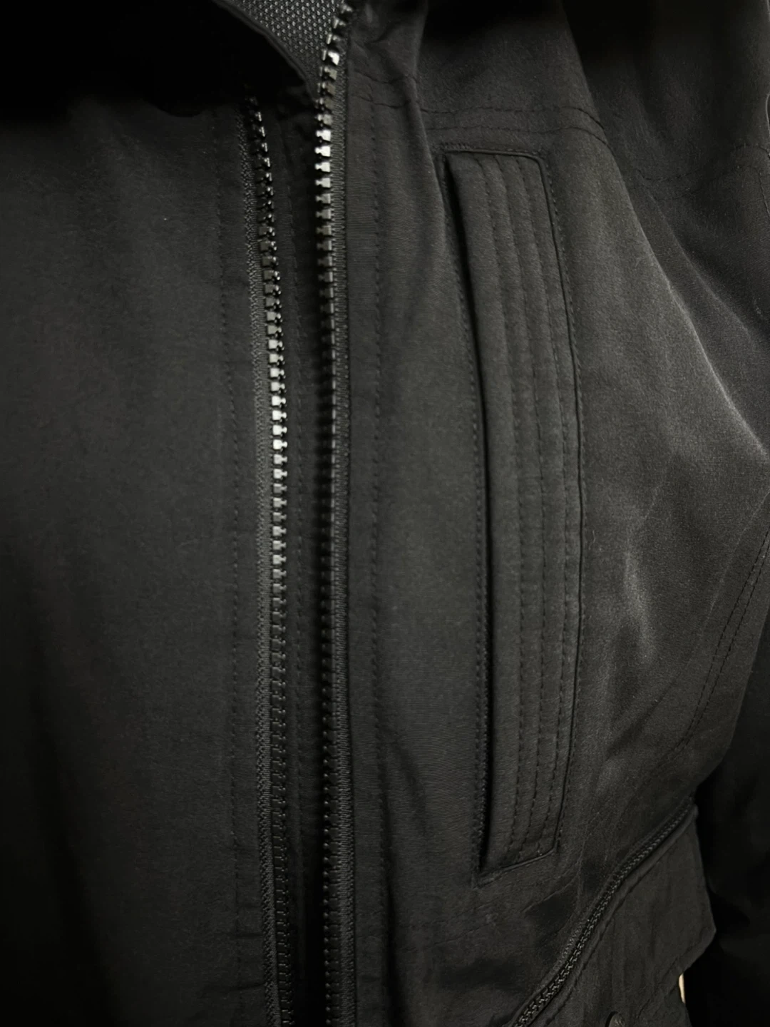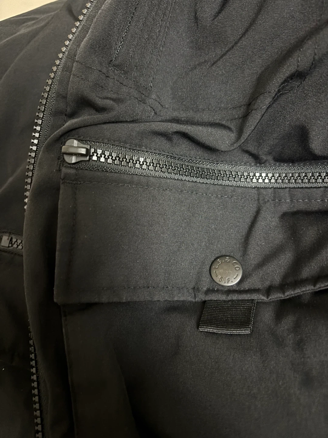 This is a stylish black puffer jacket from Levis. It features a cozy, fur-like lining and multiple pockets. Perfect for staying warm during the colder months!