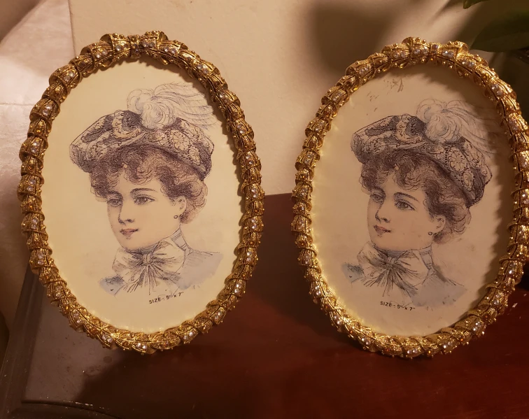 Selling a pair of vintage oval portrait frames. They have a lovely gold-tone finish with beaded detailing. The size is 5"x7". They each come with a stand on the back for easy display