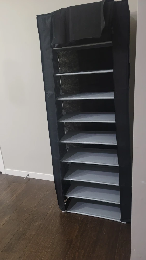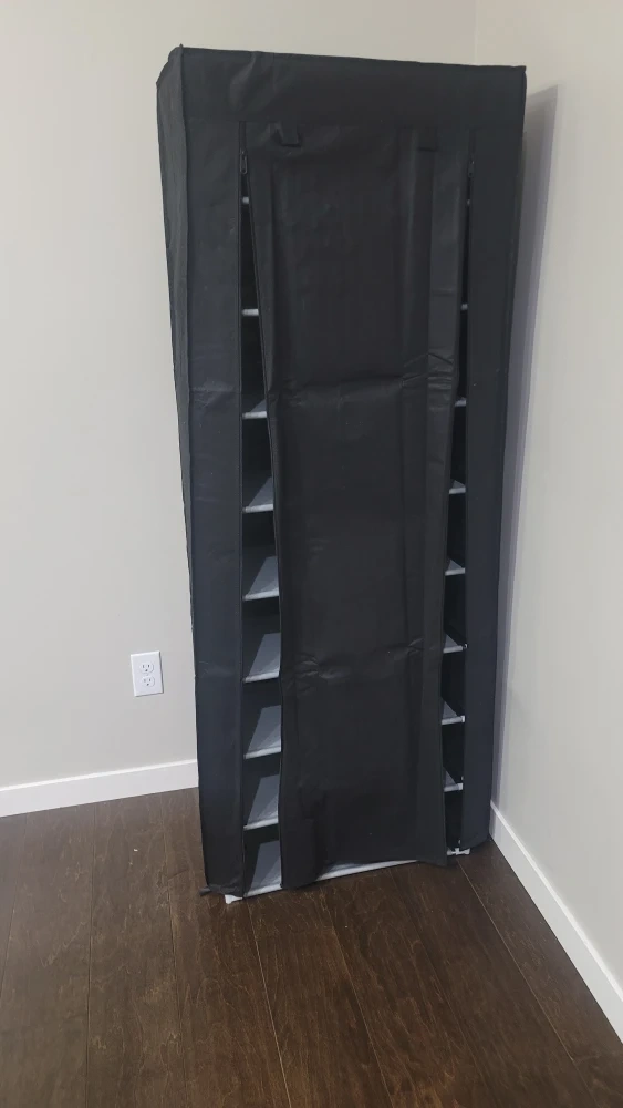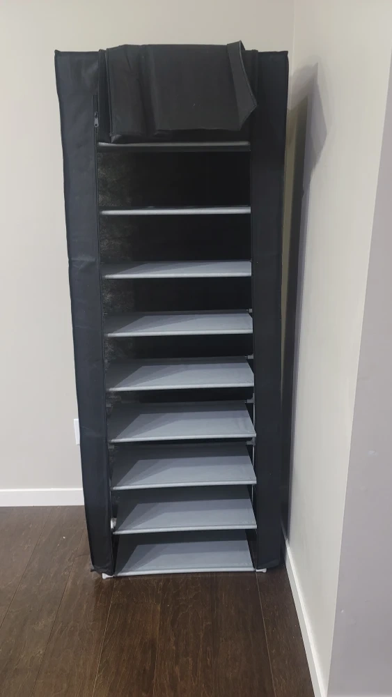 Black Shoe Cabinet with Door - Plastic/Metal/Fabric Multi-Tier Shoe Storage Organizer, -Standing Shoe Rack with Shelves & Shoe Display Top for Entryway, Hallway, Dorm - Easy Assembly (No Wood)