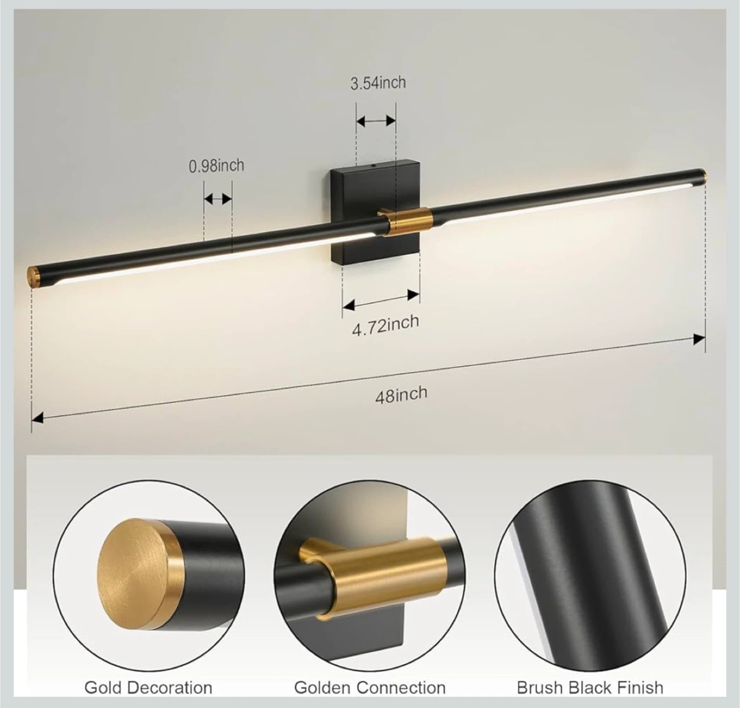 Faziyo 48inch Modern LED Vanity Light - Black & Gold