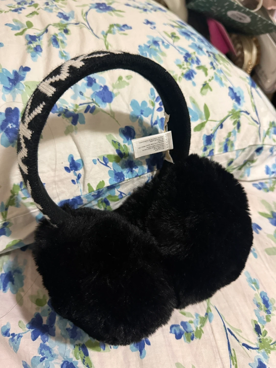 Michael Kors Black MK Logo Faux Fur Earmuffs
