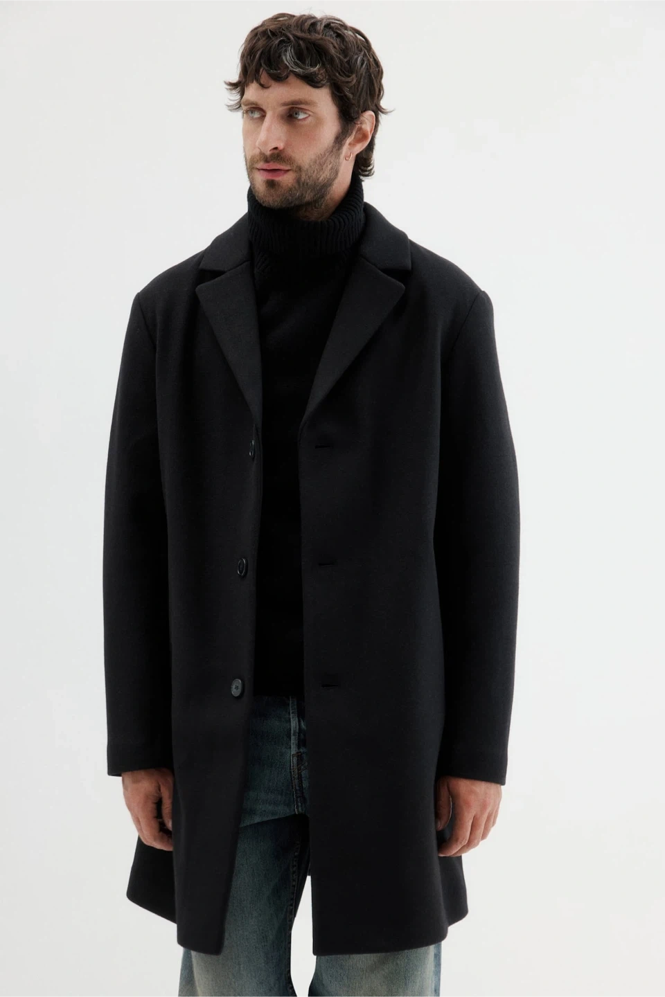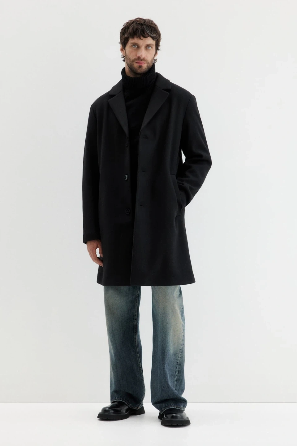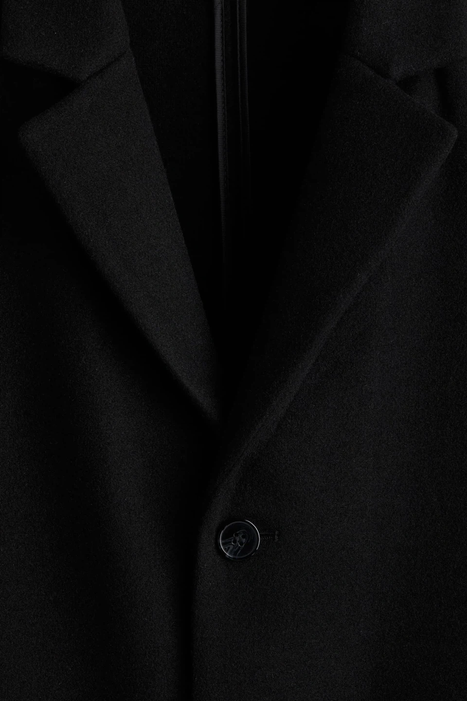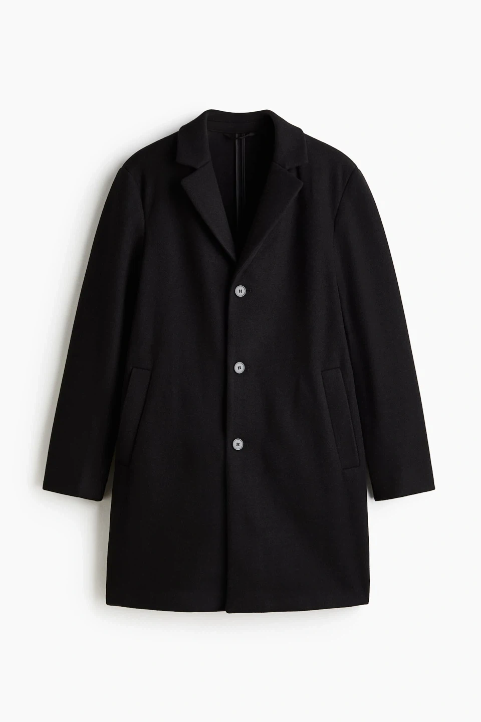 Men's Black Wool Blend Single Breasted Overcoat(Size:44R)