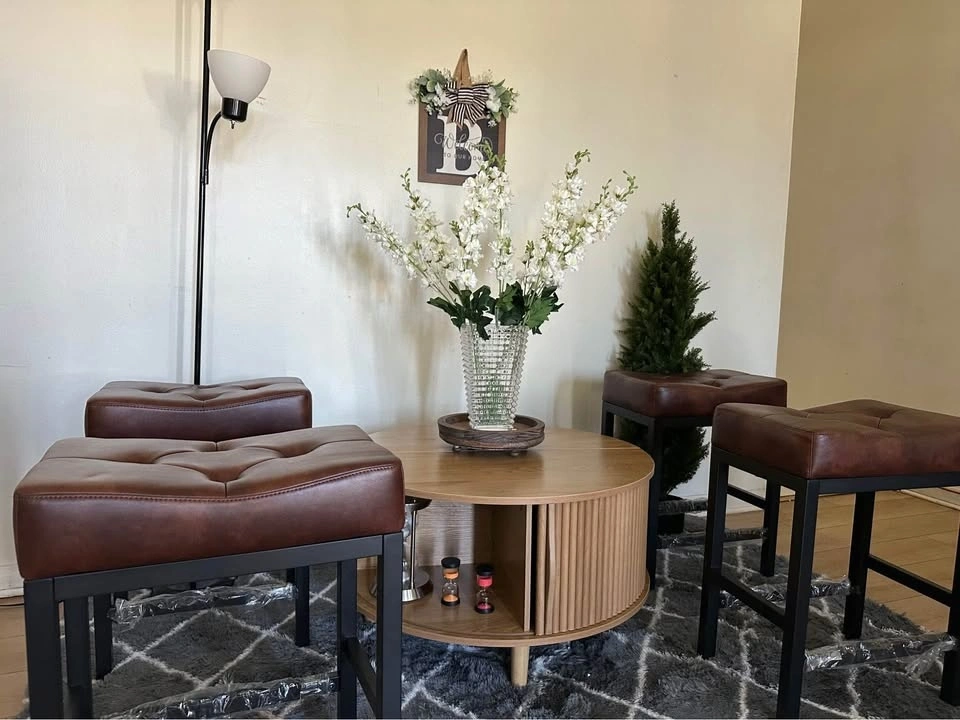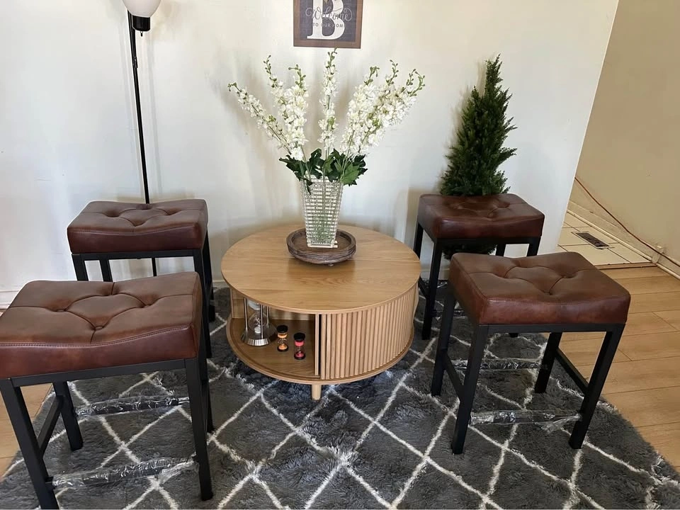 Kitchen counter stools, synthetic leather, set of 24-inch high square counter bar stools with metal legs, easy to assemble, (brown, 4) does not include table / table sold separately / new.