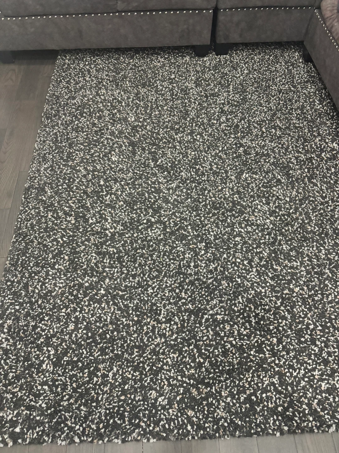 Selling a shag rug with a mix of grey and white fibres. It's in great condition and would be perfect for adding some texture to your living room or bedroom. Price is negotiable