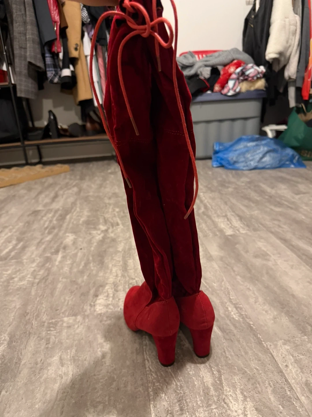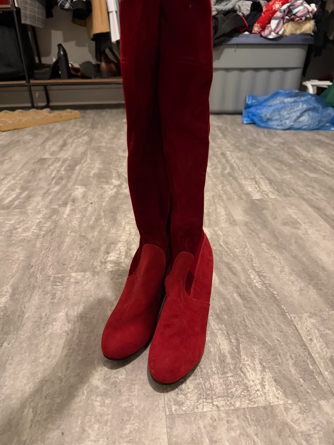 Selling a pair of stylish red over-the-knee boots! They're in great shape and ready for a new home. Perfect for adding a pop of colour to your wardrobe!