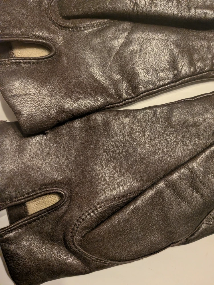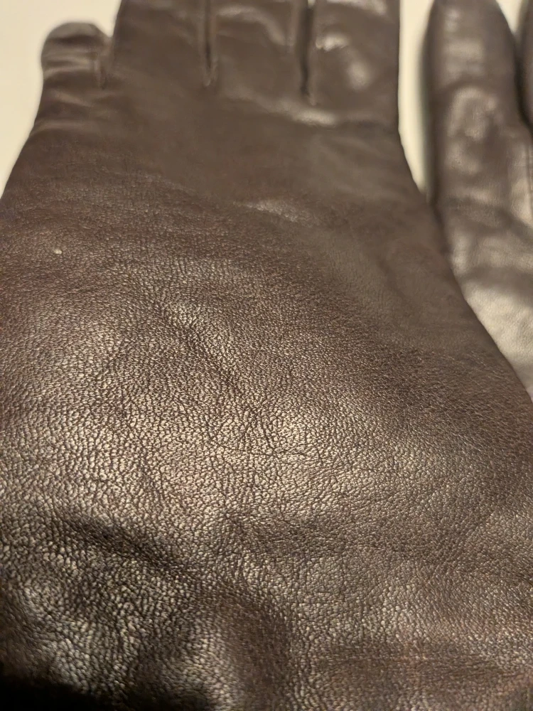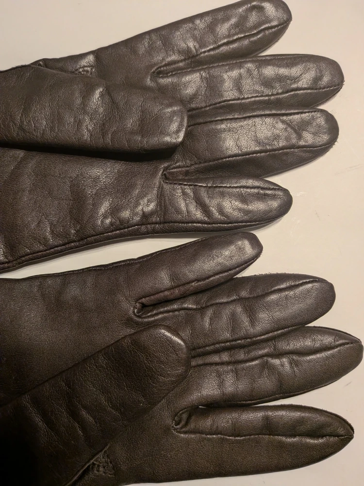 Selling a pair of lovely Vintage chocolate brown leather gloves. They're in great condition and perfect for keeping your hands warm! I don't think these were ever worn, they do not show signs of wear.