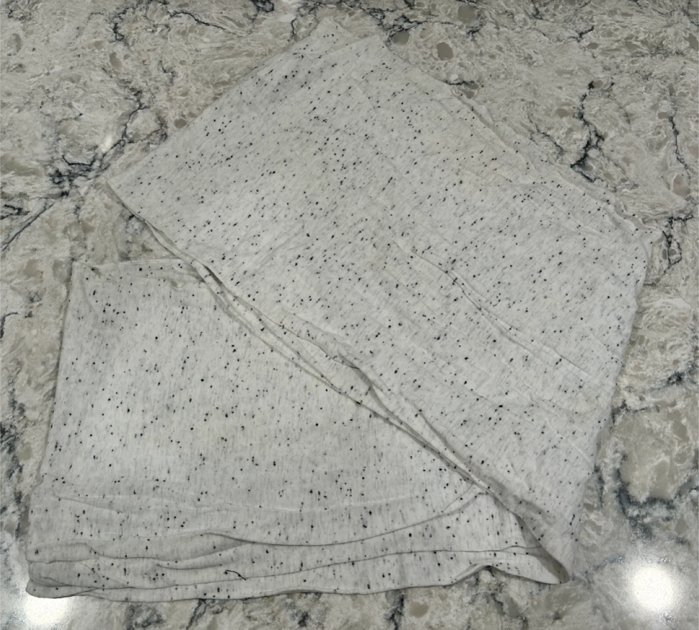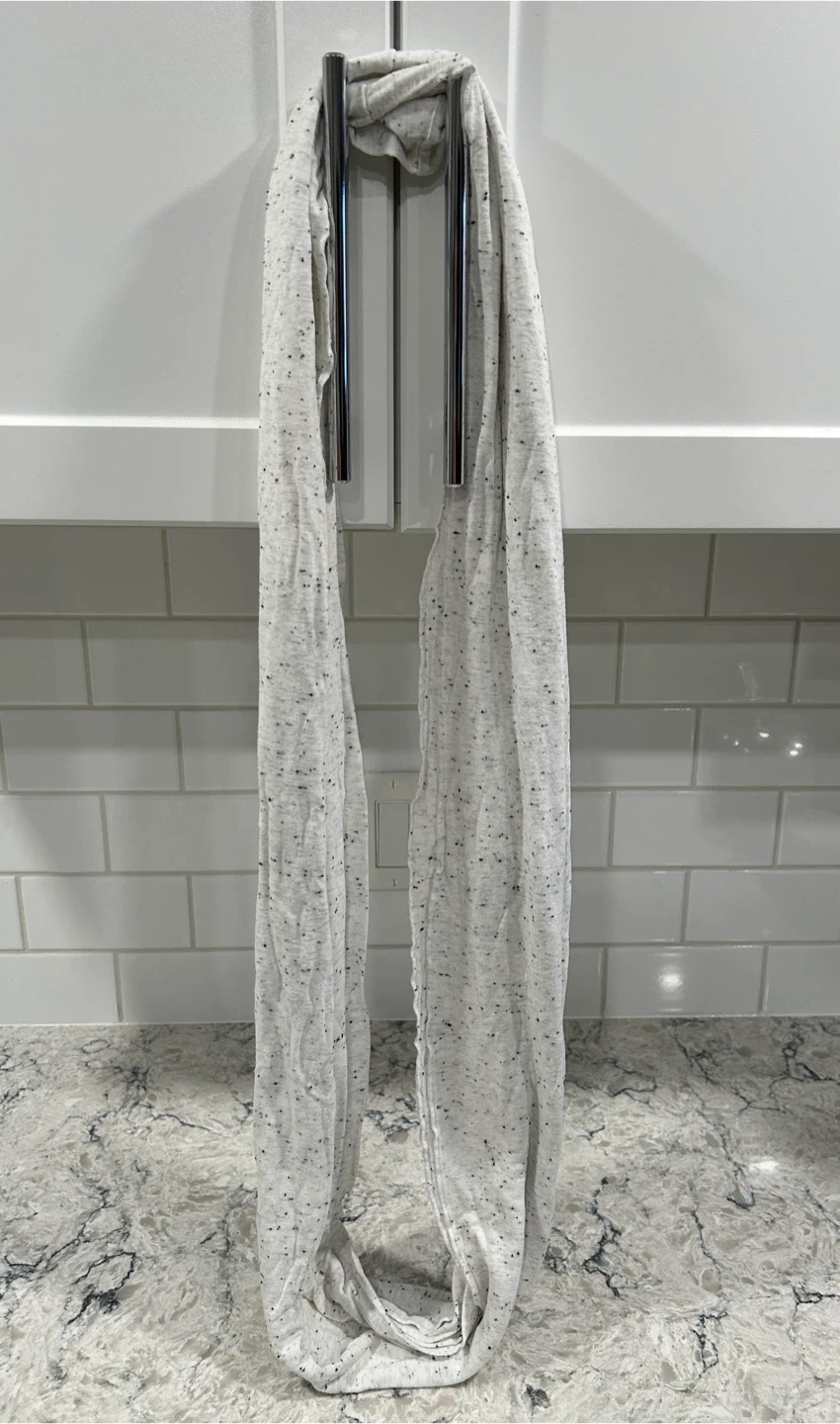 A comfy speckled grey infinity scarf, perfect for adding a touch of warmth and style to any outfit