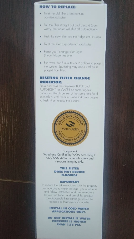 It's tested and certified by WQA according to NSF/ANSI 42 for materials safety and structural integrity only. It has a capacity of 300 gallons (1150 liters).