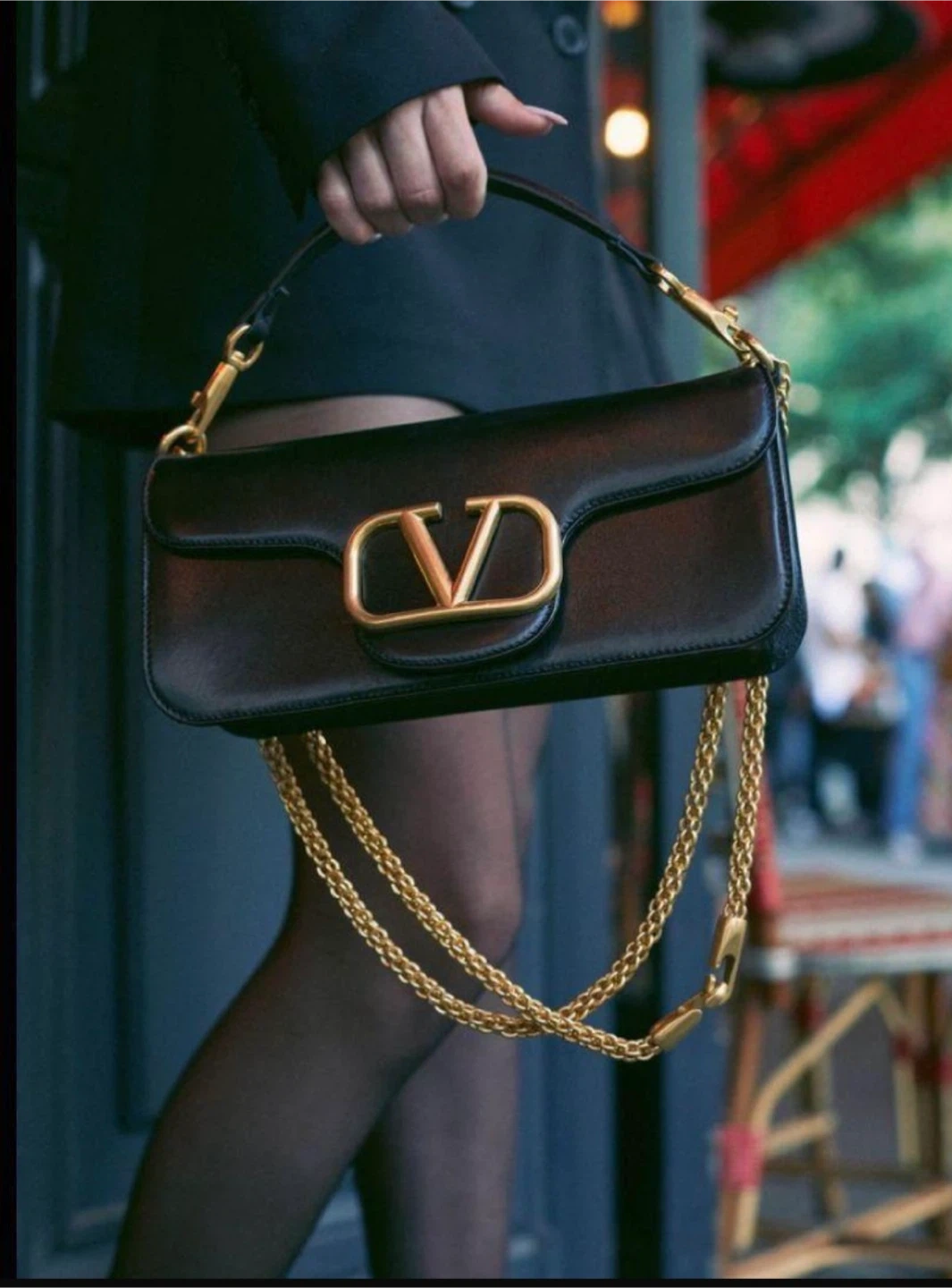 A stylish Valentino Garavani shoulder bag in classic black. Features a distinctive gold-tone 'V' logo and chain detailing. Perfect for adding a touch of luxury to your look!