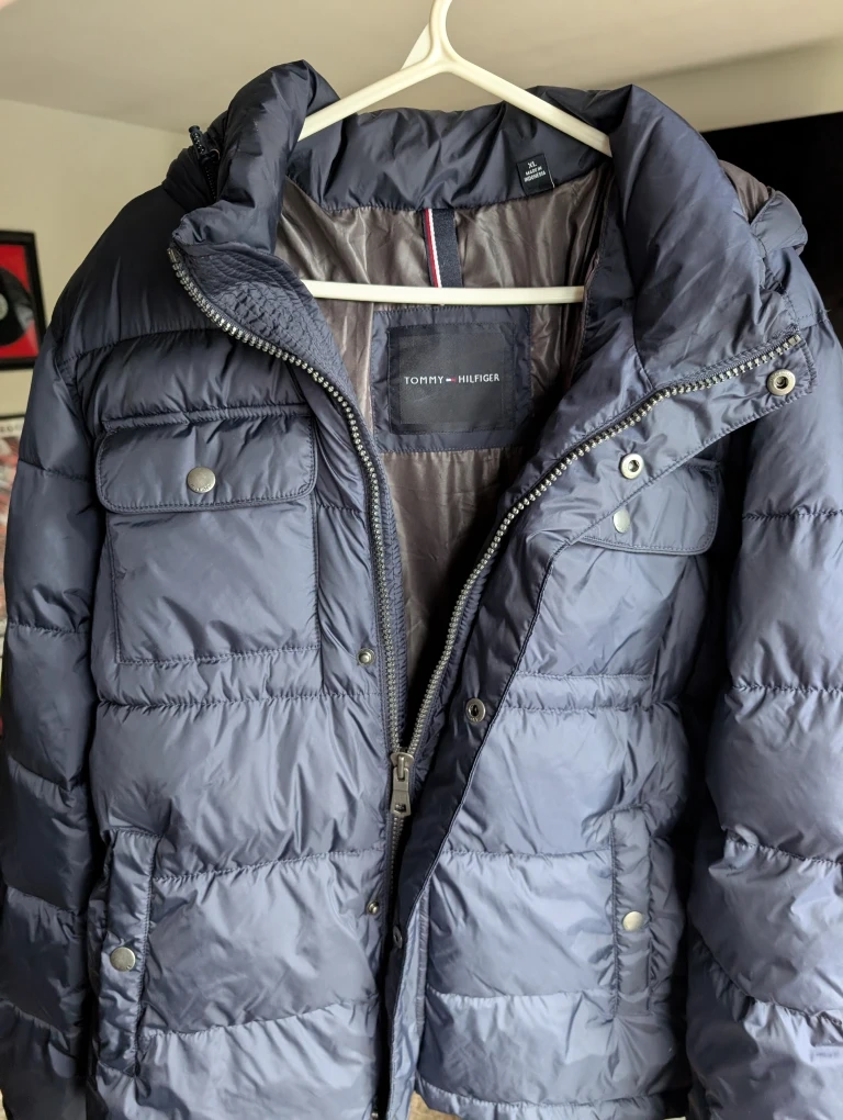 Tommy Hilfiger puffer jacket new with original tags still on. It's a size XL and the colour is midnight navy. This jacket originally retailed for $225. Perfect for staying warm this winter season!