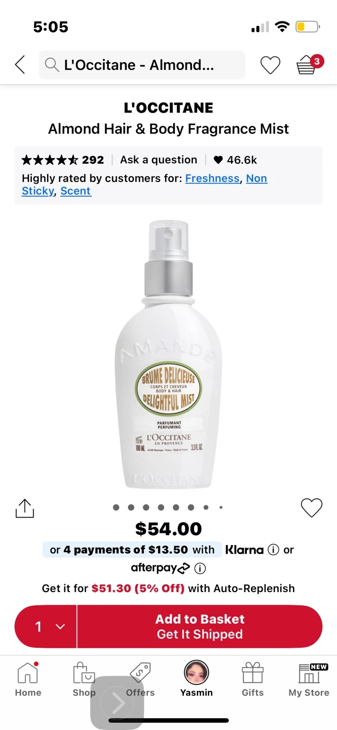 Selling a new L'Occitane Almond Hair & Body Fragrance Mist! This mist is highly rated for its freshness and scent. It's a delightful perfume for both your body and hair. The bottle contains 100ml (3.3 fl oz). Originally bought for $54.00