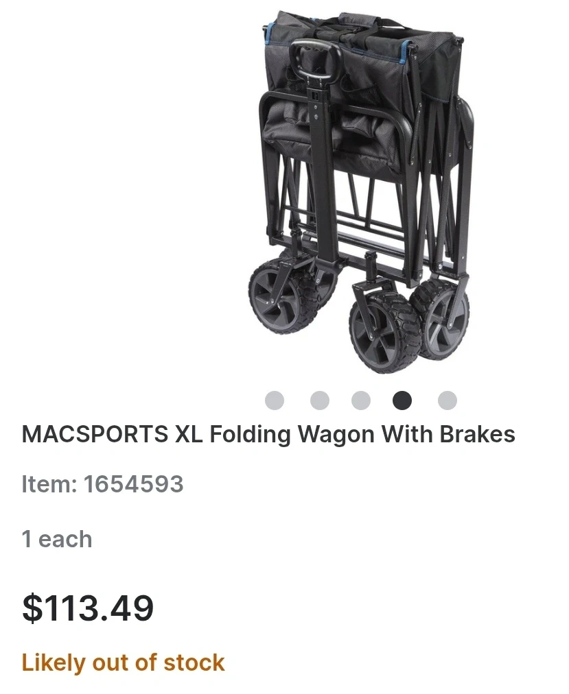 Looking to sell This brand new MACSPORTS XL folding wagon! It comes with brakes for added safety and convenience. Originally store price was for $113.49 but now its only $75. Perfect for carrying sports equipment, groceries, or anything else you need to haul around