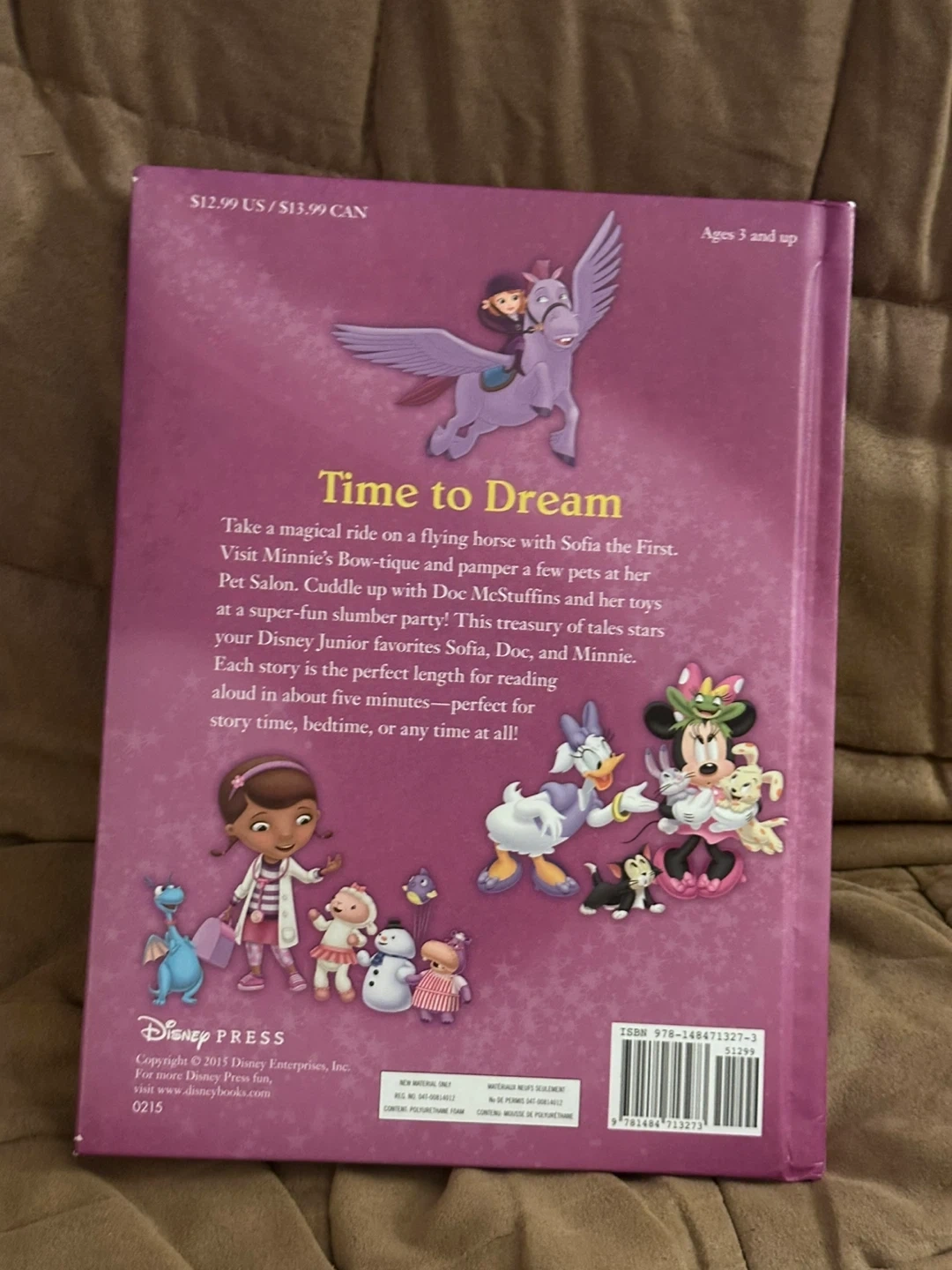 This is a book titled "5 Minute Disney Junior Stories". It's perfect for story time, bedtime, or any time at all! It includes stories featuring Sofia the First, Doc McStuffins, and Minnie Mouse. It's suitable for ages 3 and up