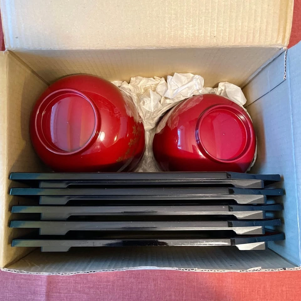 • 5 red/black bowls with gold sakura