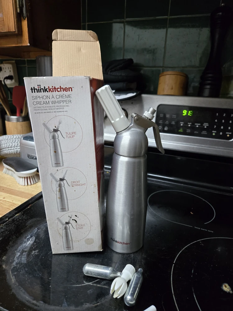 1 / 11 / 1Buy & SellThinkkitchen Cream WhipperThinkkitchen Cream Whipper$15Selling a Thinkkitchen siphon à crème (cream whipper). It comes with the box and some attachments.ConditionLike newWHERE TO MEETCheck LocationView MapSELLERverifiedKatieEtobicoke W Mall1409 reviews4 chats·2 favorites·72 viewsSEND CHAT TO SELLERHi Katie! I’m interested in your listing.Hi Katie! I’m interested in your listing.Get the Karrot app to chatSign In to chat