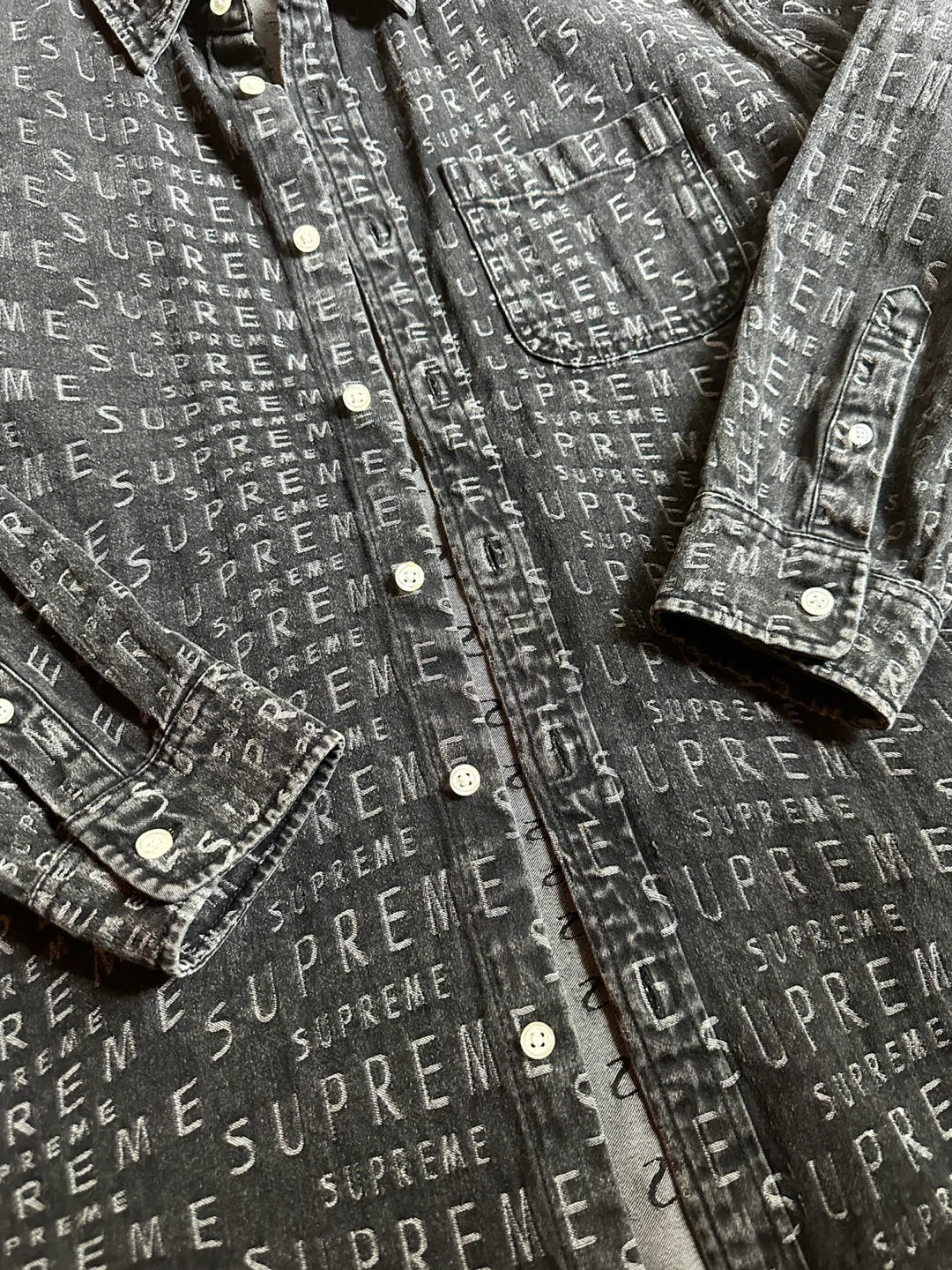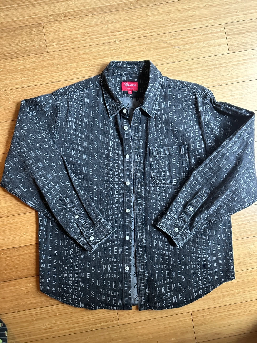 SS21 SUPREME WARP LOGO BUTTON DOWN DENIM SHIRT MEN MEDIUM