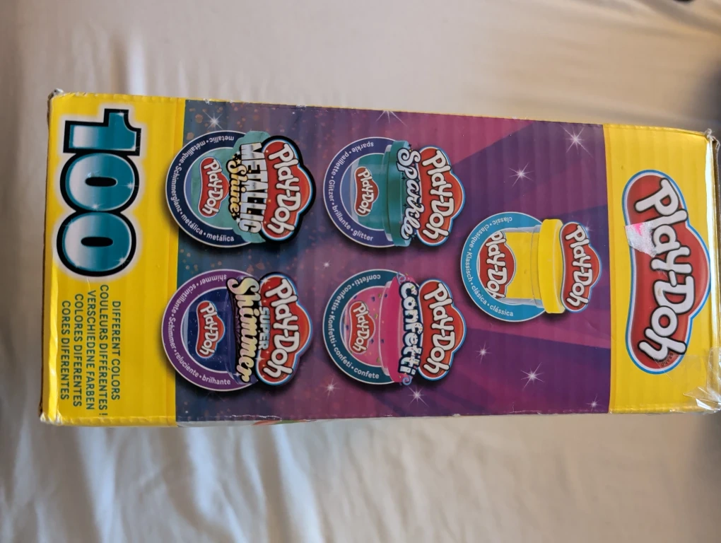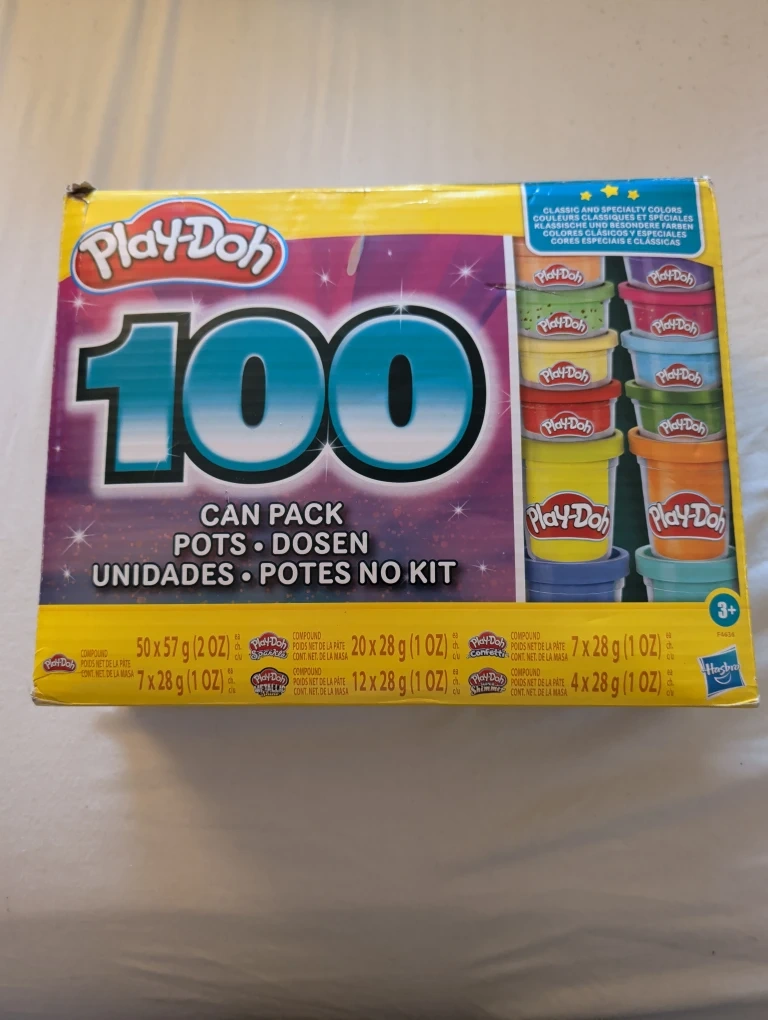 I'm selling a brand new Play-Doh 100 Can Pack! It comes with a variety of classic and confetti colors, so there's tons of options for kids to get creative. The box is included.