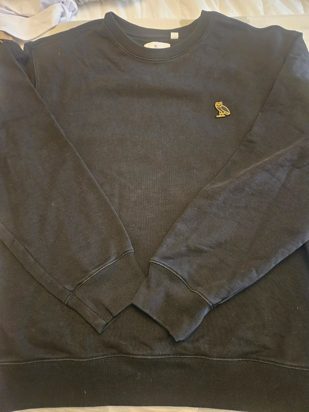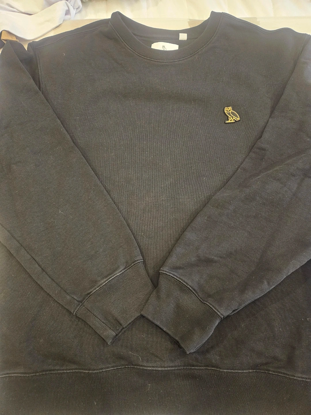 Only worn a couple of times.OVO Essentials crewneck sweatshirt! It's black and features the signature OVO owl logo. This is a great, comfortable piece for everyday wear. Unisex