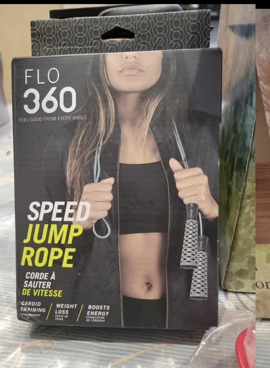 Selling a brand new FLO 360 Speed Jump Rope, still in its original packaging! This jump rope is designed to help you feel good from every angle with cardio training, weight loss, and boosts of energy. Get your workout on!