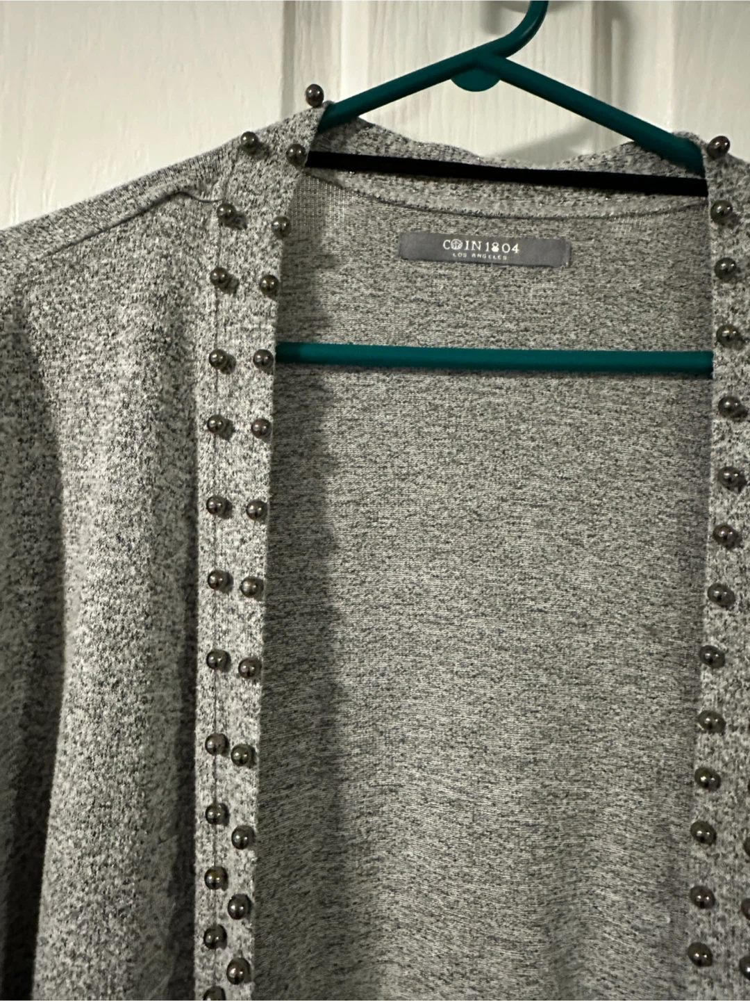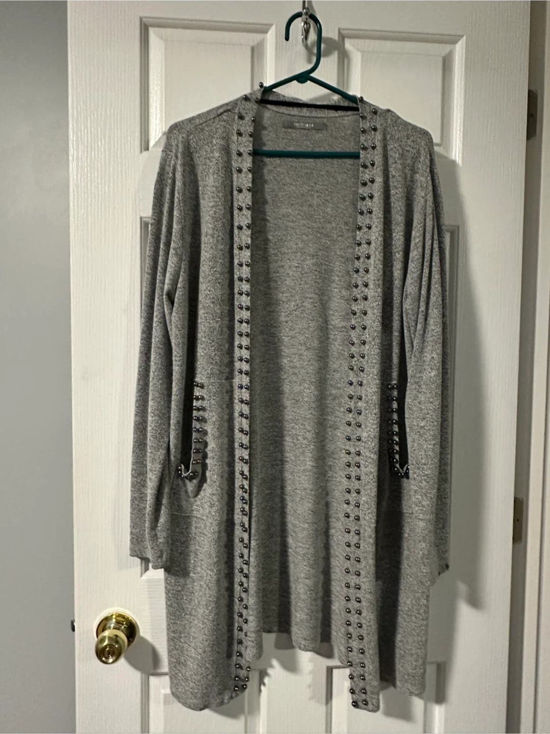 Here's a cardigan in a lovely grey colour! It has some really nice detailing with the studs along the front and pockets. Perfect for layering or just adding a bit of edge to your outfit