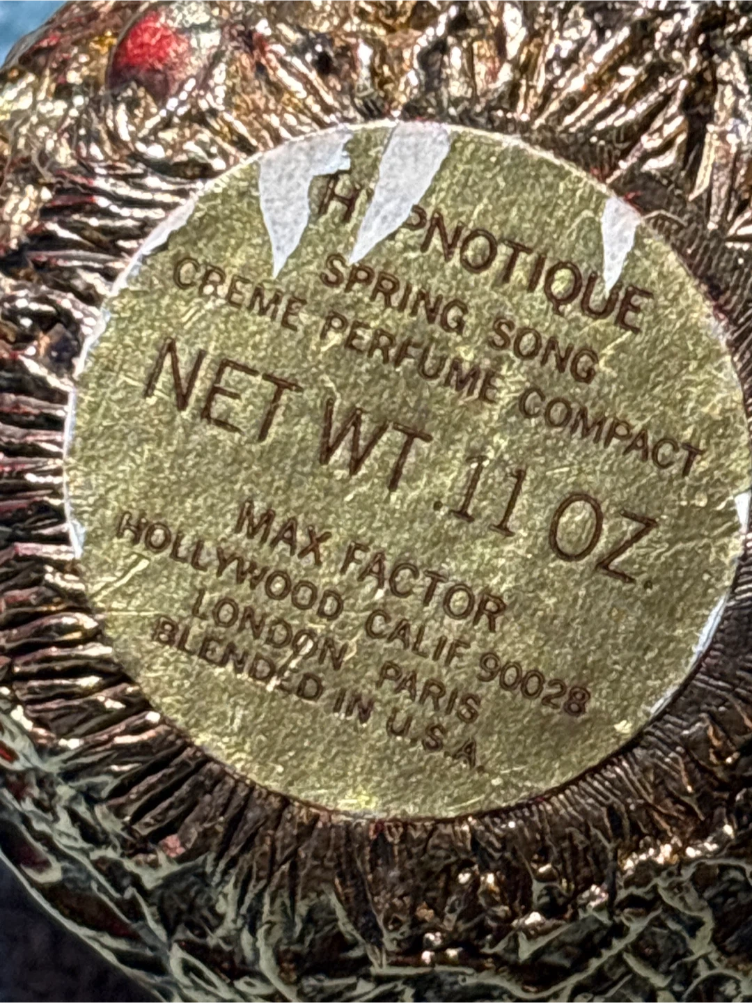 Selling a collectible vintage 1970 max factor Hypnotique Creme Perfume Compact. It's a spring song scent and contains net weight of .11oz. The compact is blended in the USA.