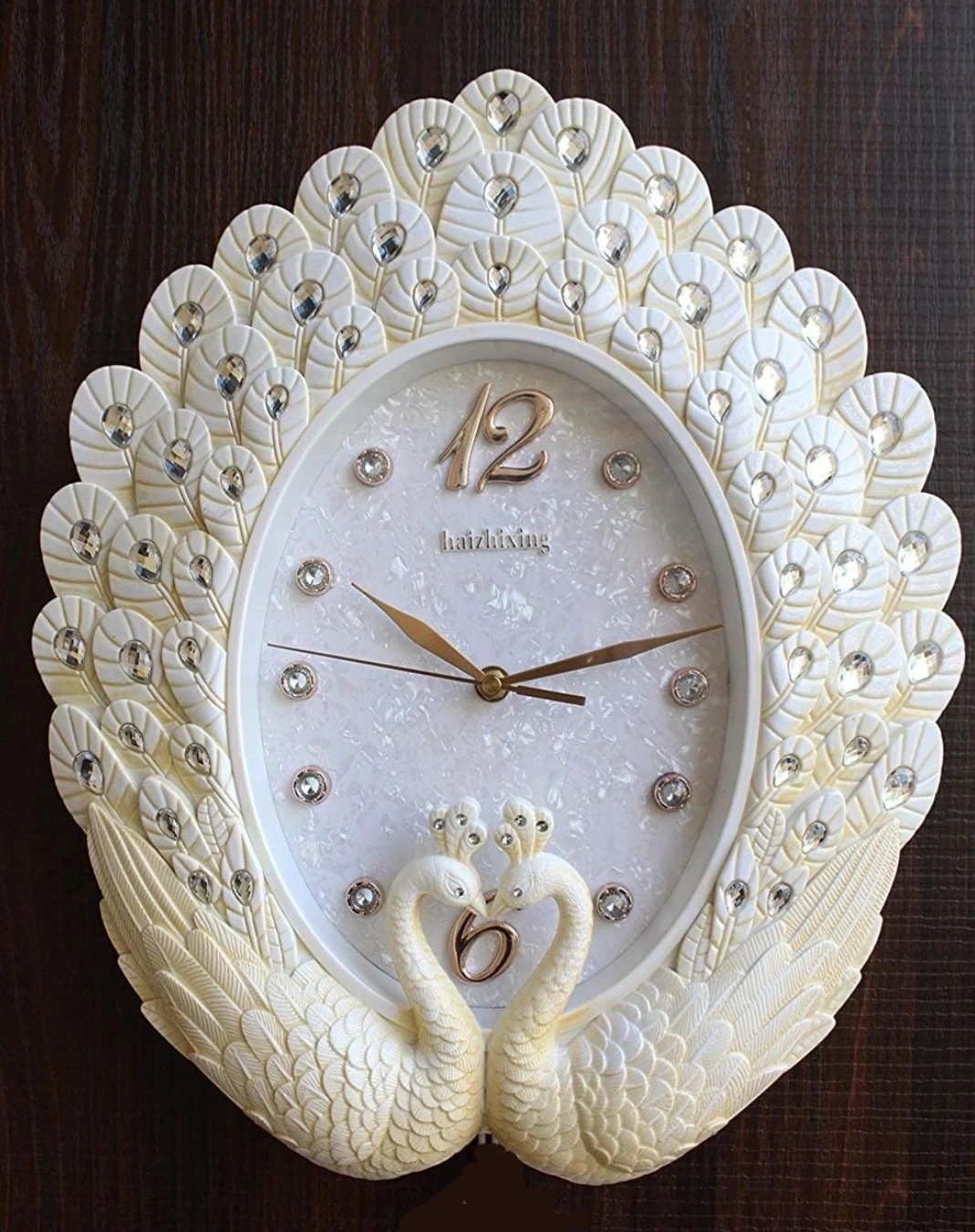 Haizhixing Pearl White Peacock Wall Clock – Elegant Home Decor
