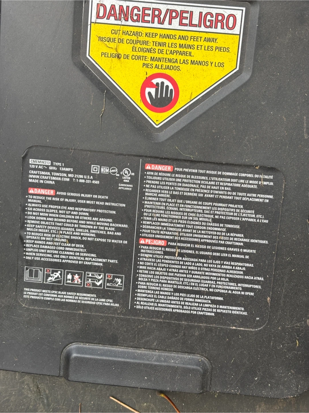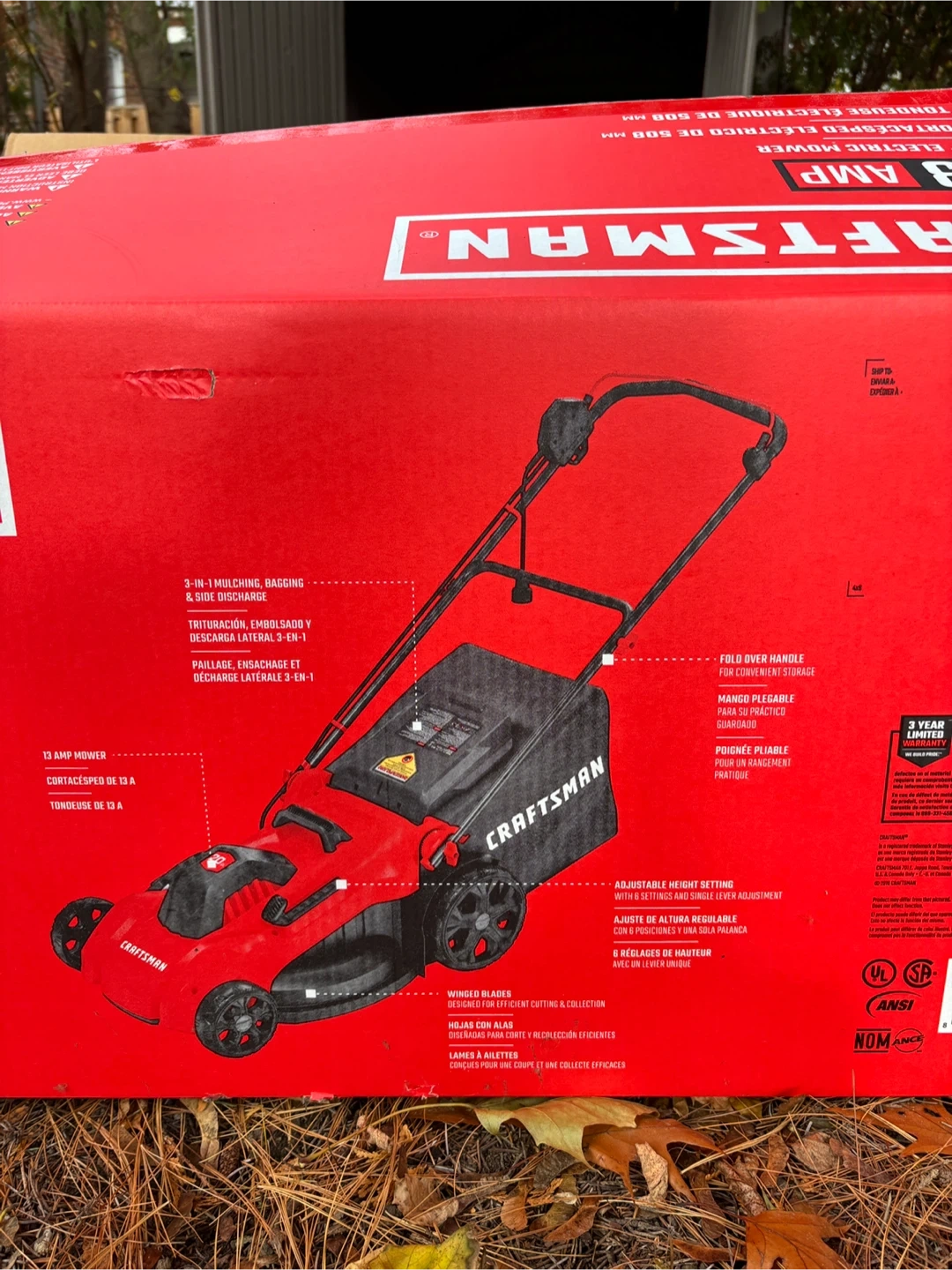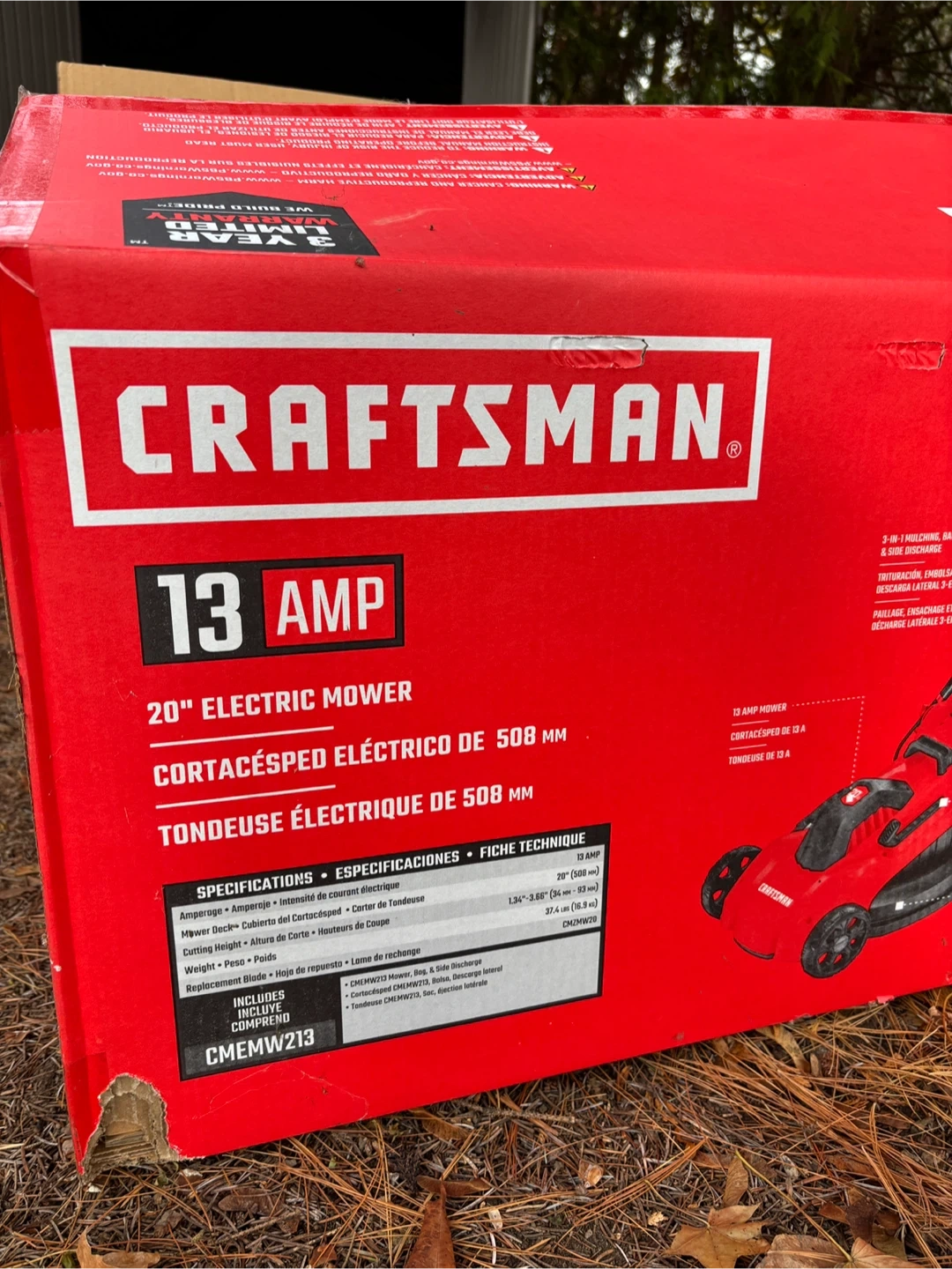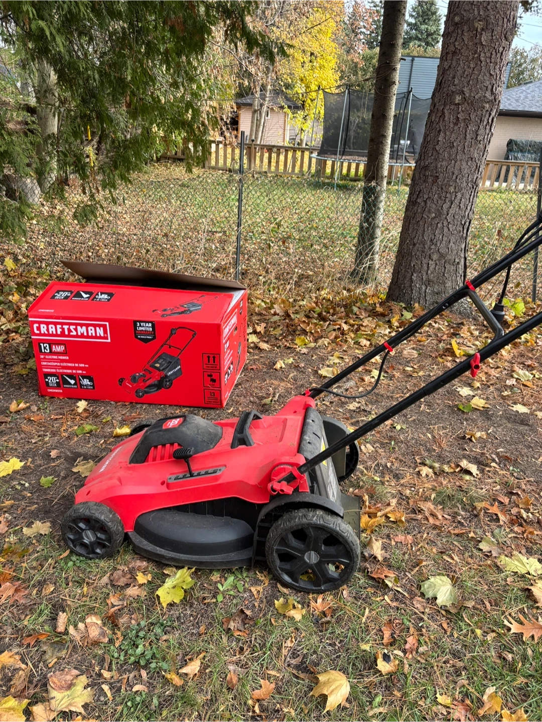 Selling a Craftsman 20-inch electric lawn mower. It's a 13 Amp model. Features include 3-in-1 mulching, bagging, and side discharge.