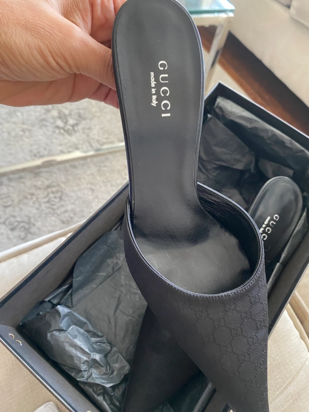 Selling a pair of Gucci heels in black. They are a size 36.5C and come with the original box and dust bag!