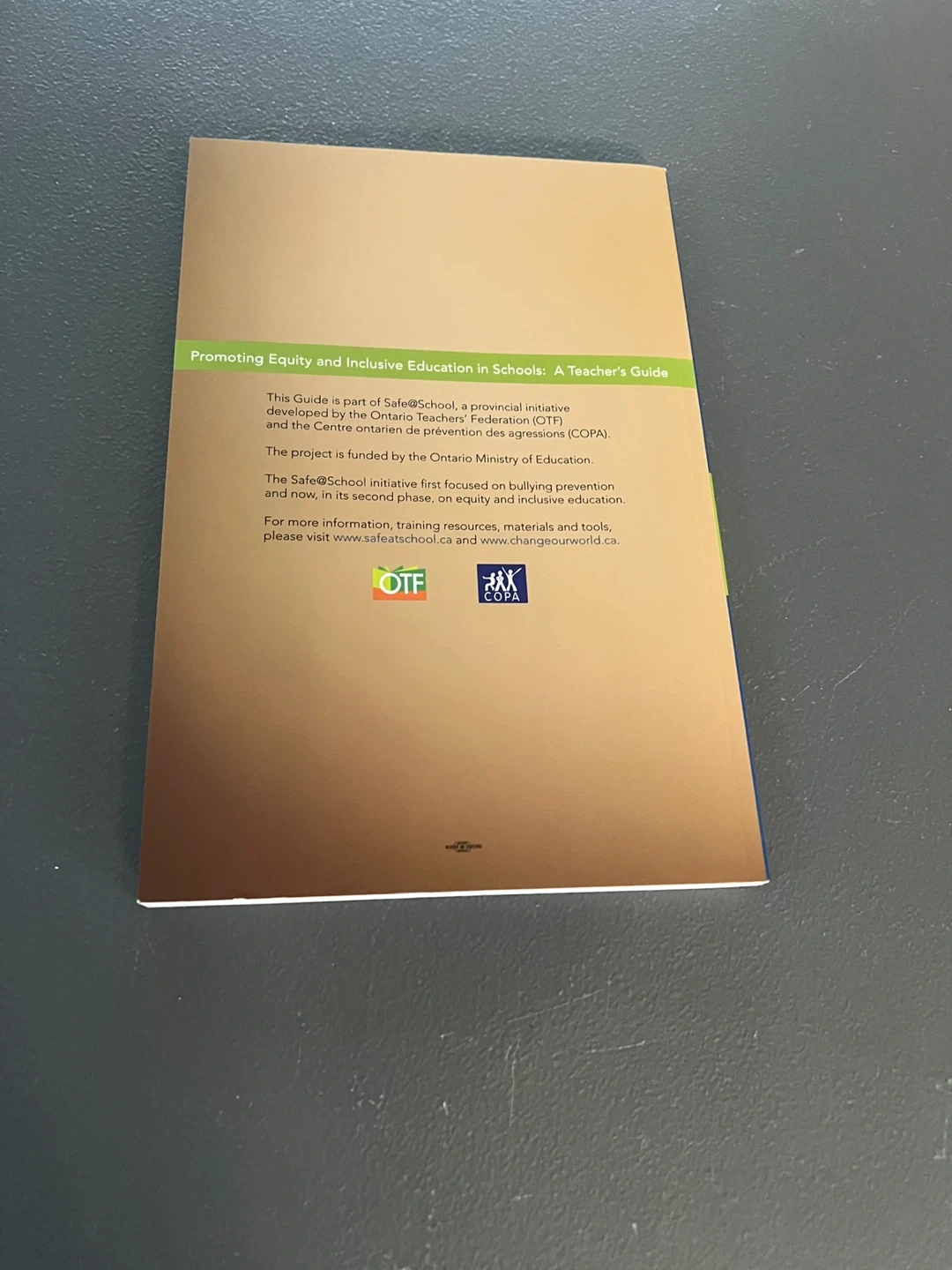 Selling a teacher's guide titled 'Promoting Equity and Inclusive Education in Schools: A Teacher's Guide'. It is a resource developed by Safe@School, a provincial initiative, and funded by the Ontario Ministry of Education. This guide focuses on bullying prevention and responds to second-hand injury and discrimination item comes from a pet and smoke free home. Port Union/401/Pickering for pick up.