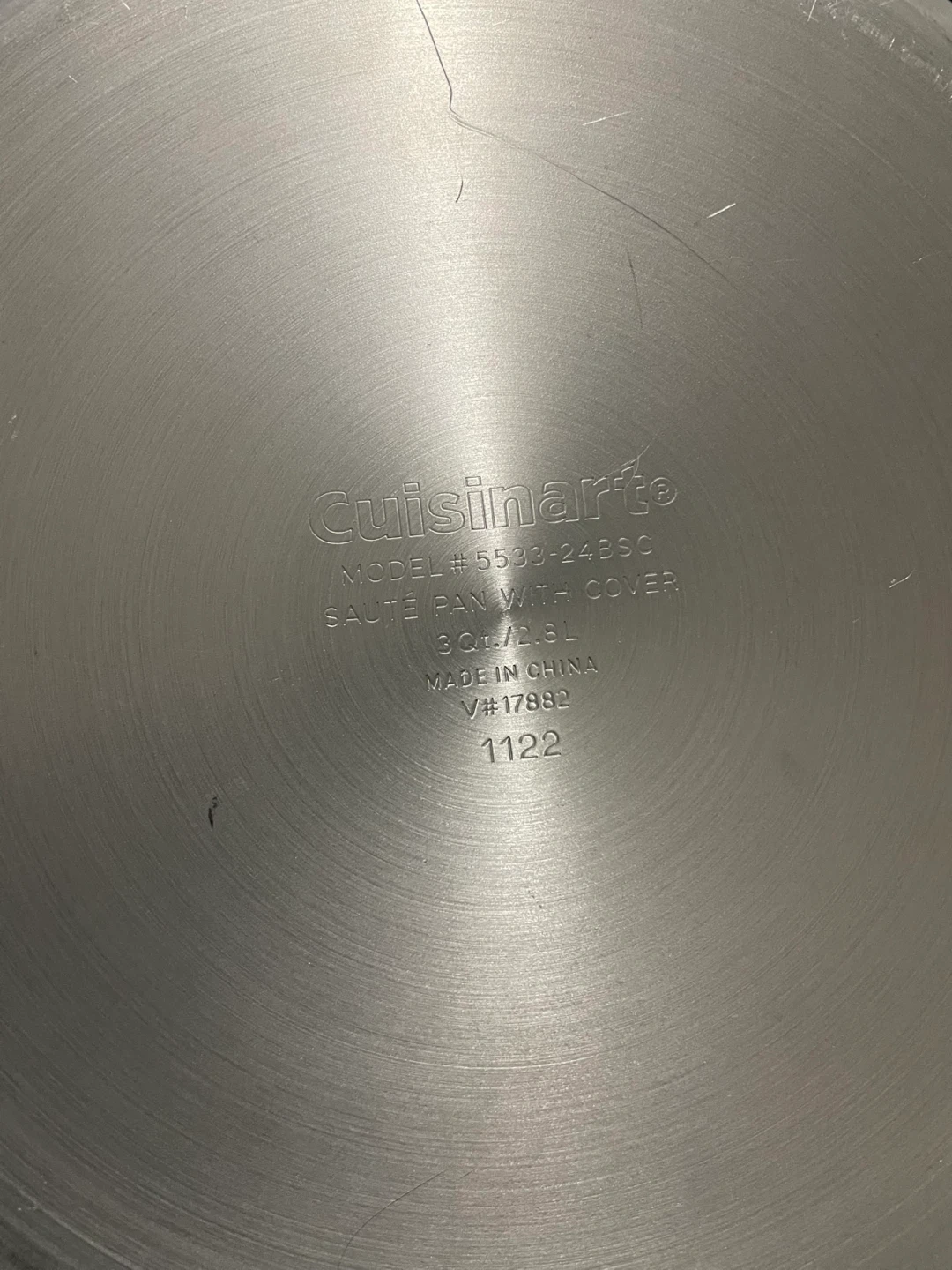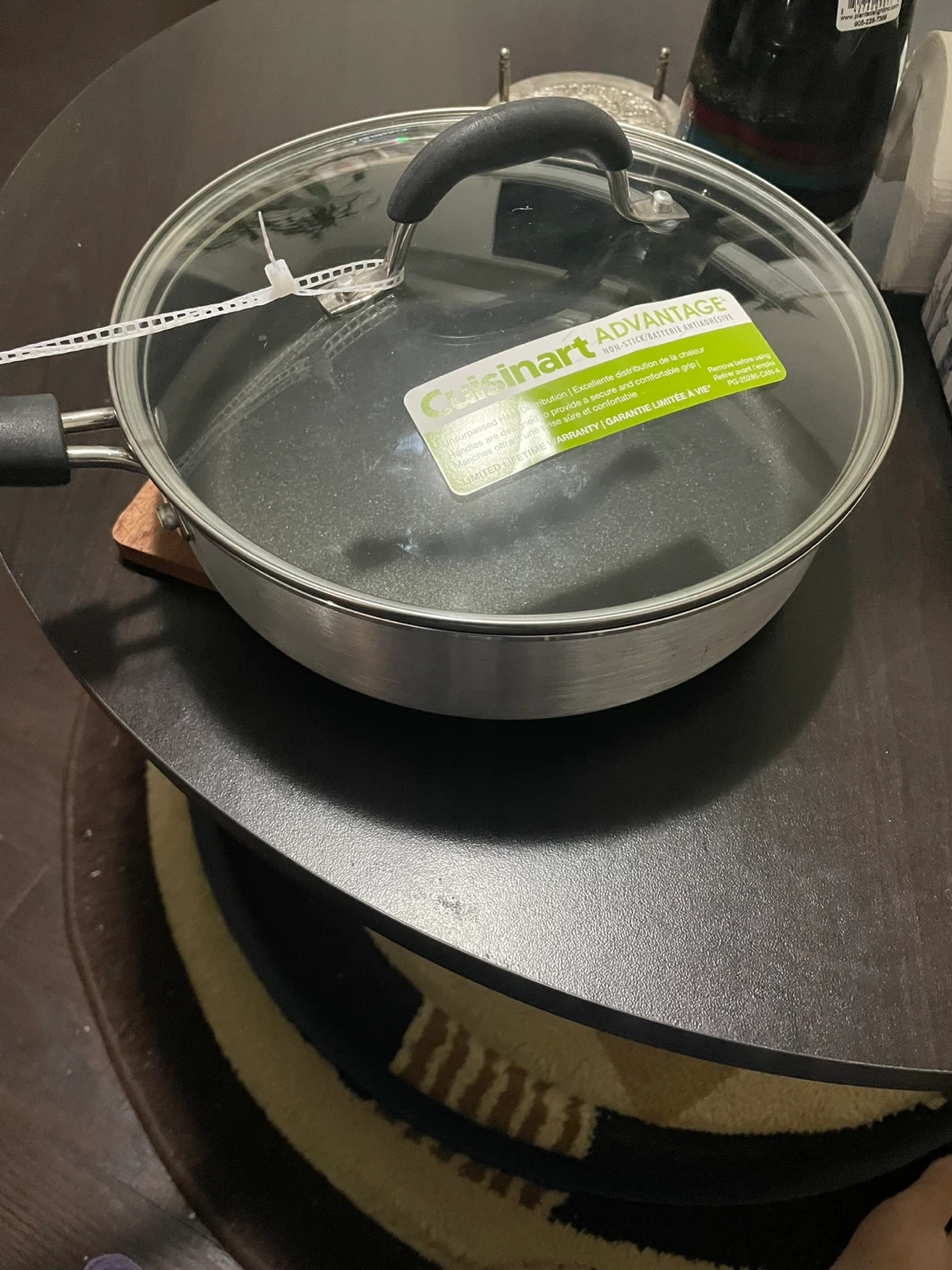 Selling a Cuisinart Advantage non-stick fry pan, complete with its lid! It's in great condition and ready for a new home. This pan is perfect for all your cooking needs!