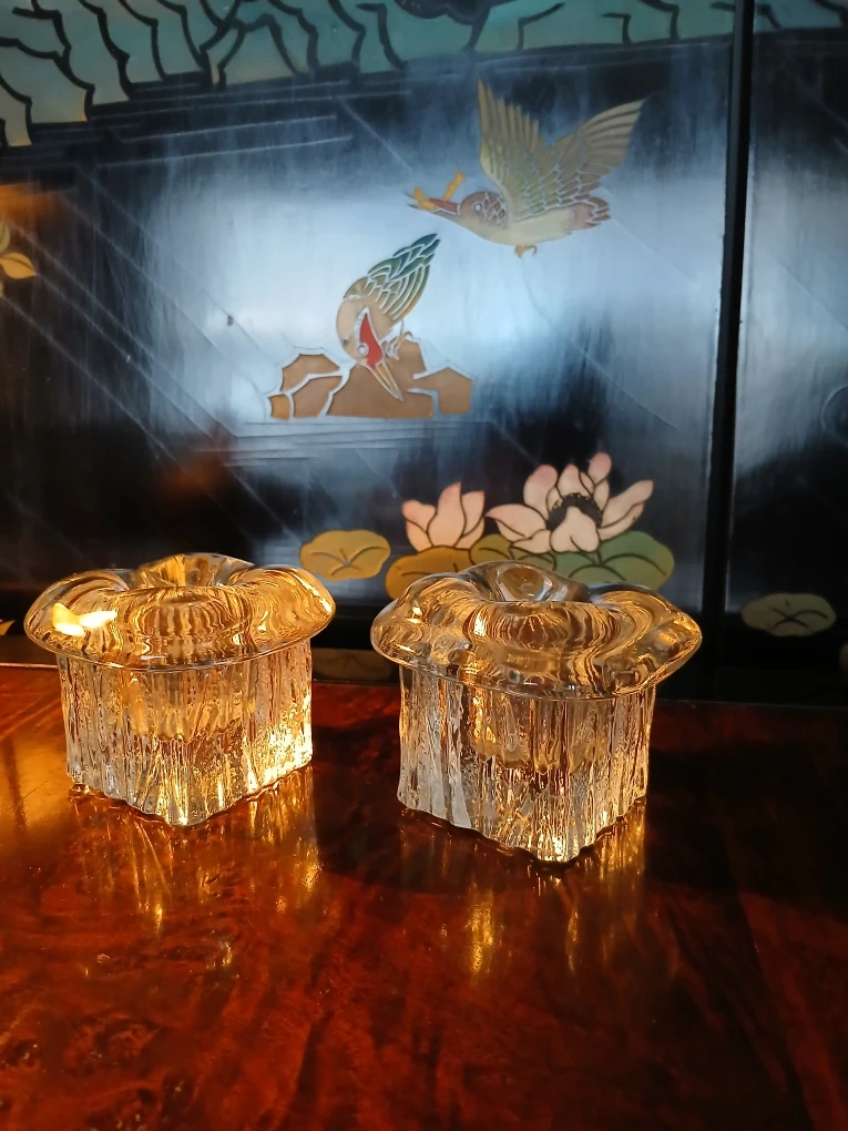 Mid Century Modern 1970's Crystal Candle Holders, Vederfin Argentina.