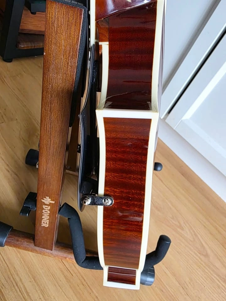 I've only had the KM-756 for a few months, and it's essentially been stored in its case. Essentially a new mandolin, it plays beautifully and has no marks whatsoever - the pickguard still has the plastic cover! In a smoke-free and humidity controlled environment.